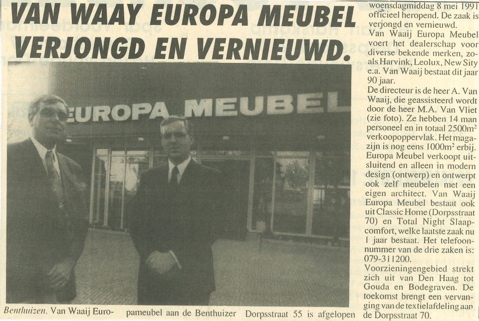 Cornelis’ zaken liepen zo goed, dat hij in 1937 een grote showroom liet bouwen. Dat was de grondlegging voor ‘Van Waay Interieurverzorging’. In 1960 kwam Cornelis’ zoon Willem in de zaak, vijf jaar later gevolgd door zijn broer Arie. De broers lieten in 1980 een nieuw pand bouwen, tegenover de reeds bestaande zaak. Het nieuwe gebouw presenteerde moderne meubelstukken. In 1989 sloten de deuren van de originele kledingwinkel, om in dat pand een slaapwinkel te starten.