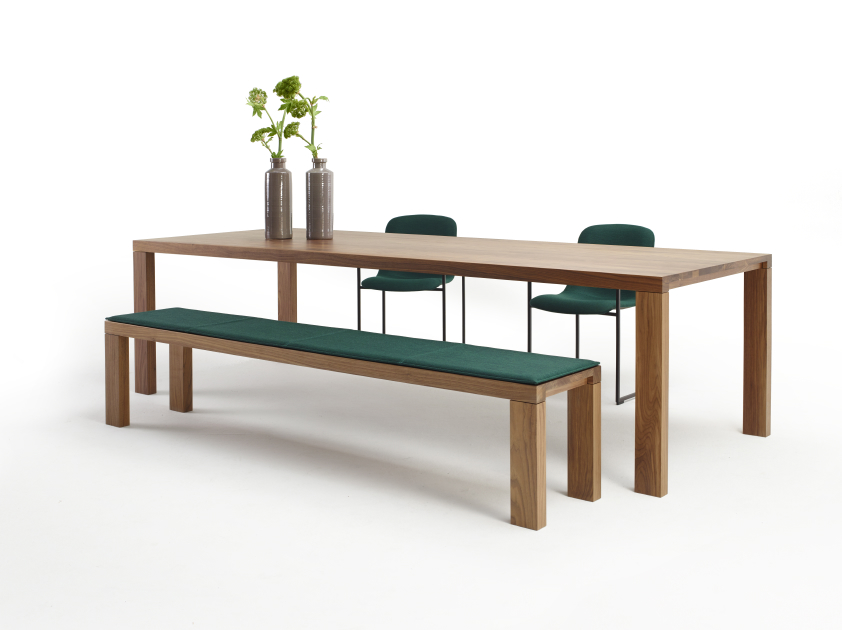 Essenza Bench is ontworpen om een geheel te vormen samen met de Essenza tafel. De bank is zowel in eiken- als in notenhout leverbaar en kan optioneel voorzien worden van een comfortabel zitkussen.