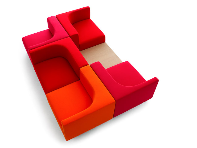 Dick Spierenburg heeft voor de Side by Side serie verschillende basiselementen ontworpen, die met de hulp van een beetje creativiteit gecombineerd kunnen worden tot een unieke, exentrieke bank. Ieder element kan voorzien worden van een (gemeenschappelijk) onderstel.