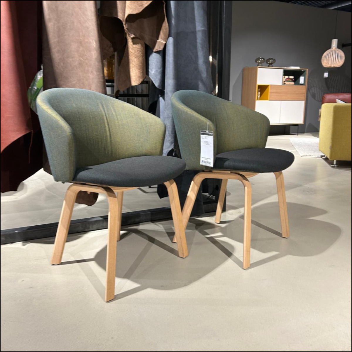 Deze Close eetkamerstoelen van Arco zijn stoere design eetkamerstoelen met een mooie, subtiele stof waarin lichte en donkergroene tinten zijn verwerkt. De stoel valt op door haar eenvoud en biedt hetzelfde comfort als het uiterlijk belooft. De ronde rugleuning is speciaal ontworpen om perfect aan te sluiten op het menselijk lichaam, zodat u optimaal ondersteund en comfortabel zit. De set van 2 stoelen (prijs per stuk) is nu ook als beschikbaar in onze showroom met een setprijs van € 799.