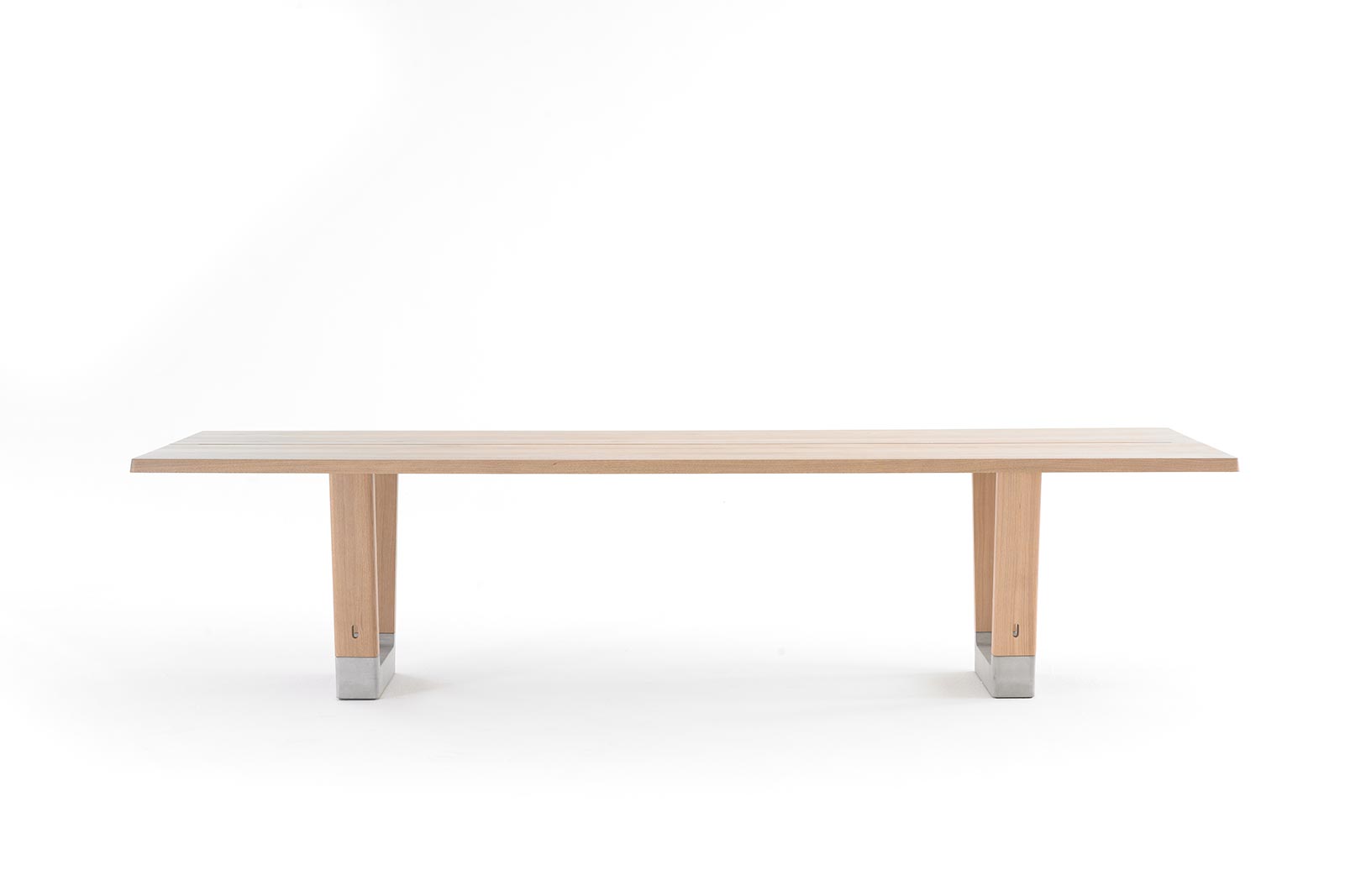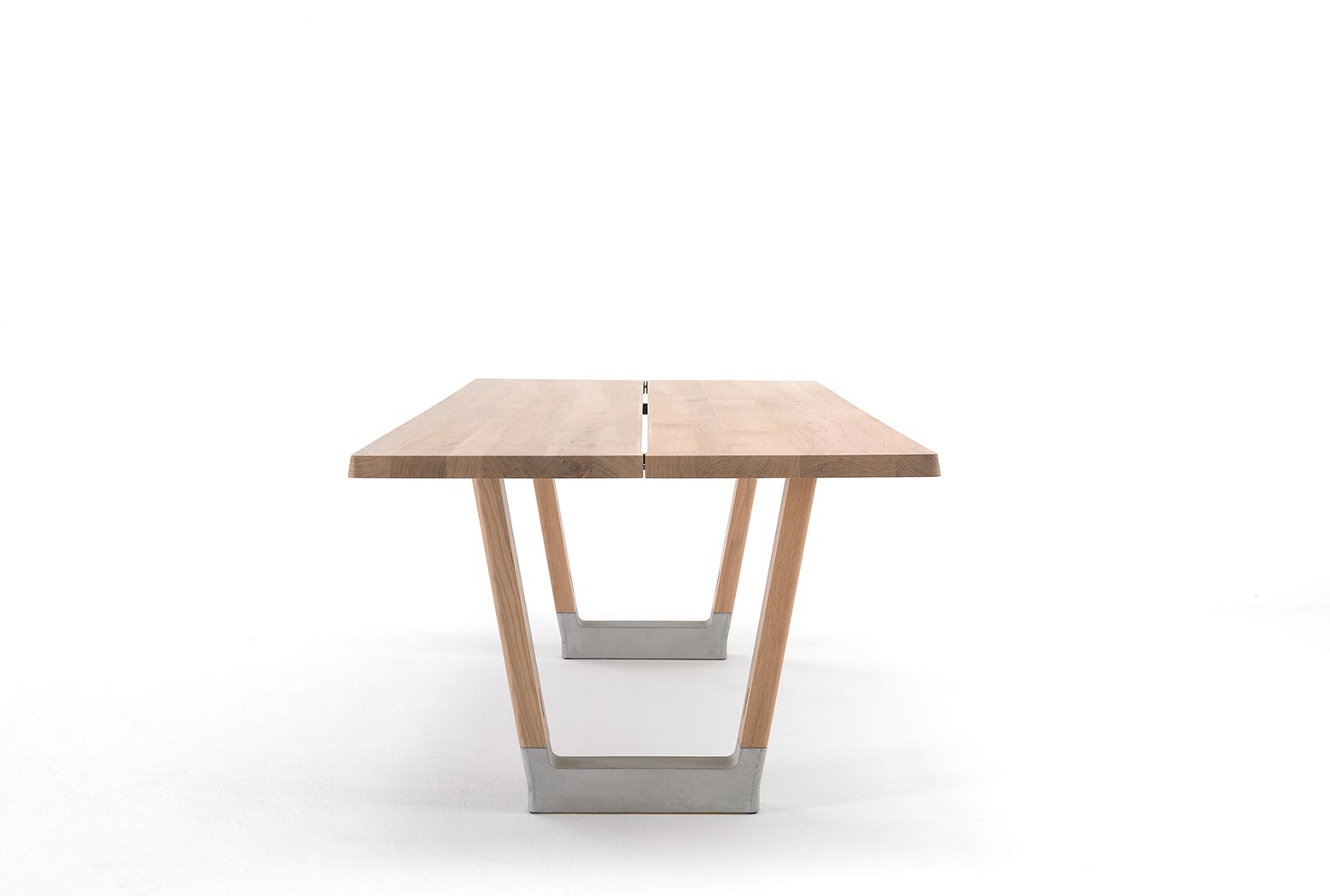 De tafel is beschikbaar in massief lokaal eiken, in verschillende standaard maten en afwerkingen. Op aanvraag zijn er – binnen bepaalde kaders – echter ook afwijkende maten mogelijk. De kleinste standaard tafelmaat is 240 x 100 x 75 cm.
