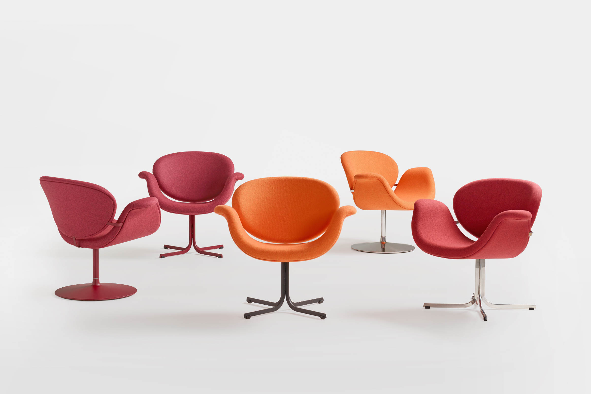 De Tulip Midi is ontworpen door Pierre Paulin in 1960 en maakt de Tulip-serie compleet. Deze middelgrote fauteuil is de perfecte maat tussen de Little Tulip eetkamerstoel en grote Tulip fauteuil. De Tulip Midi, destijds genaamd F549, heeft een cross-base onderstel of schijfonderstel.