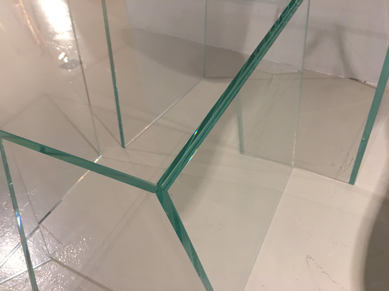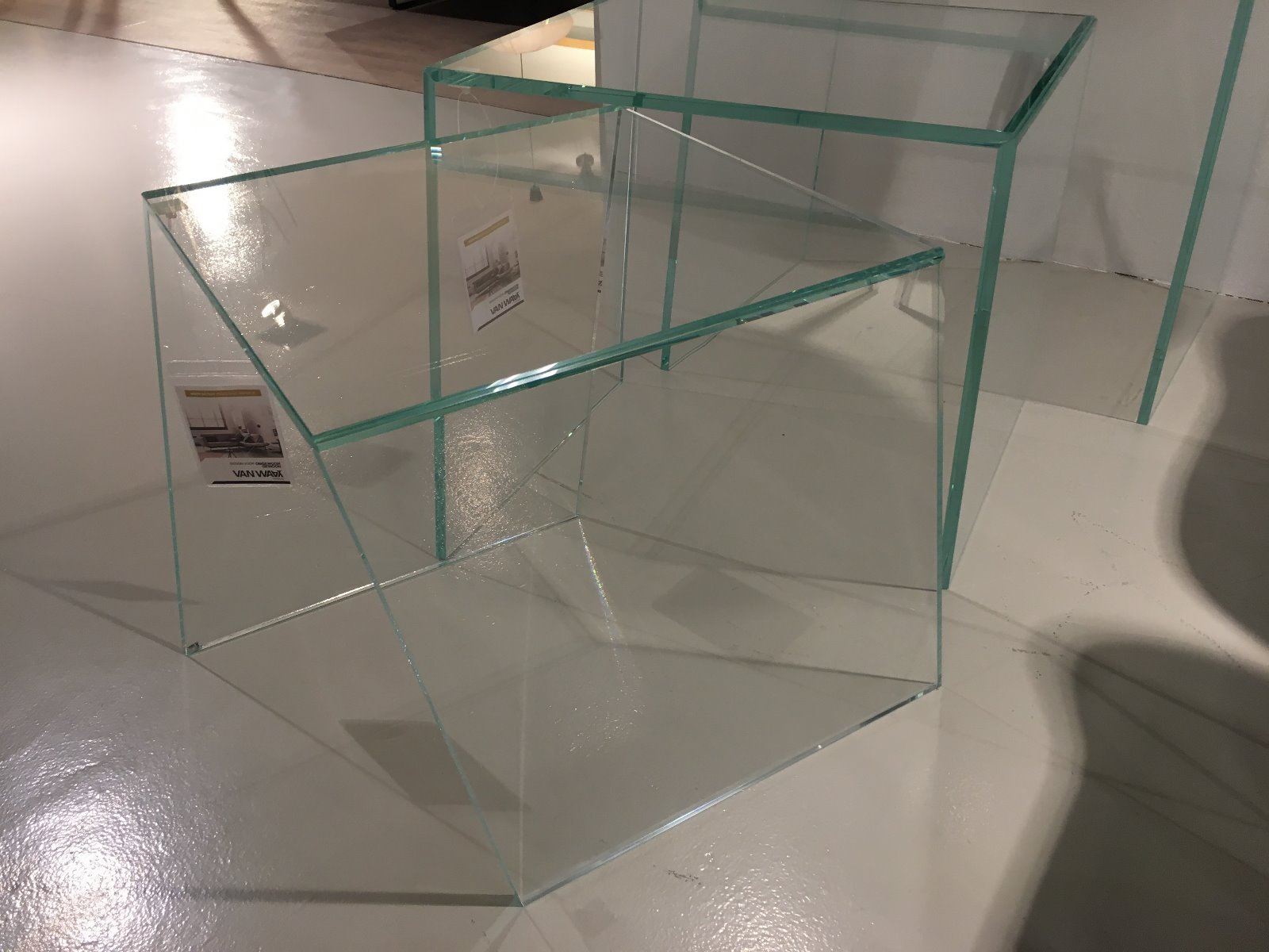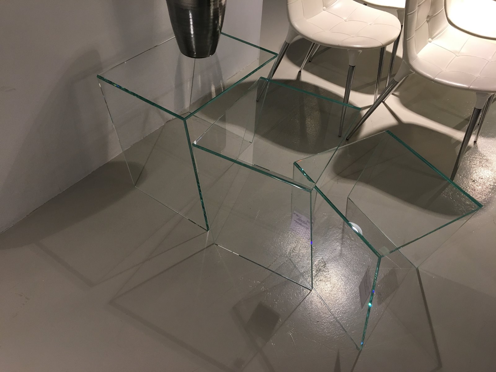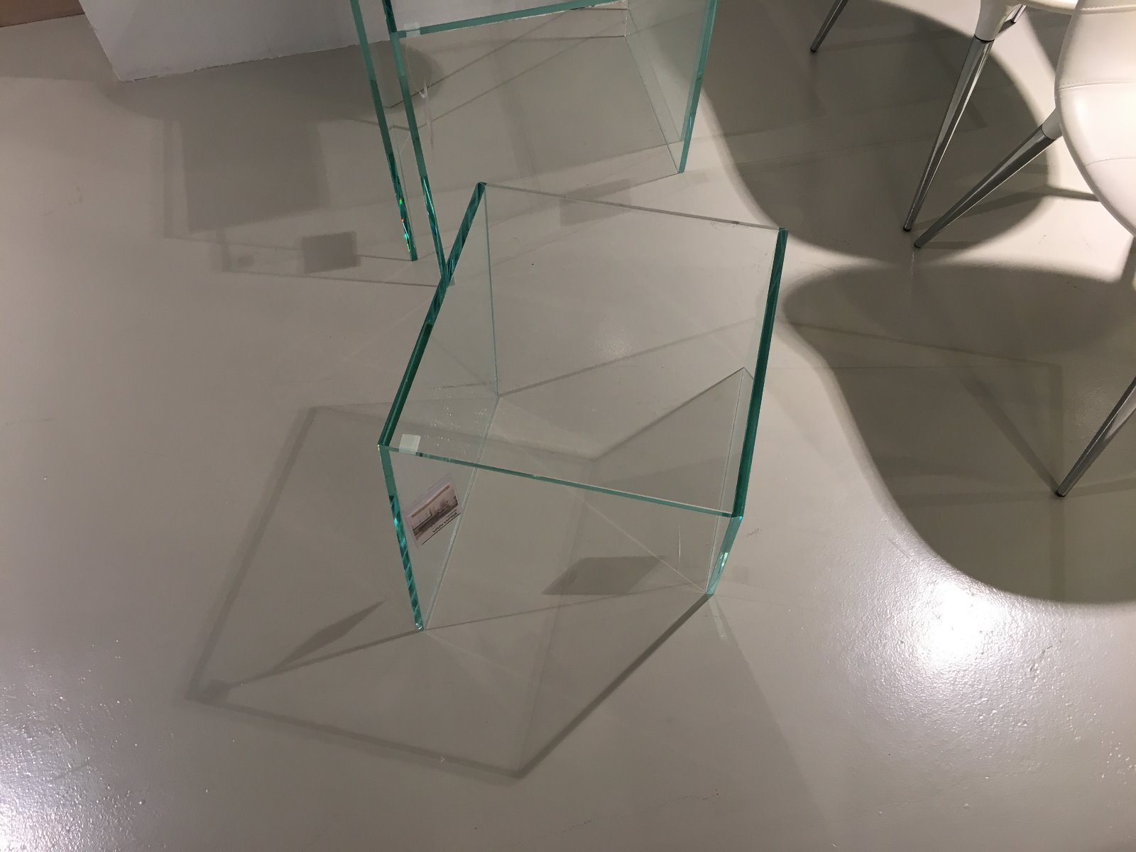 Bijzettafel model H312 mm extra helder glas. Afmeting 40 x 40 cm. / 54 x 41 cm.