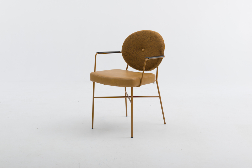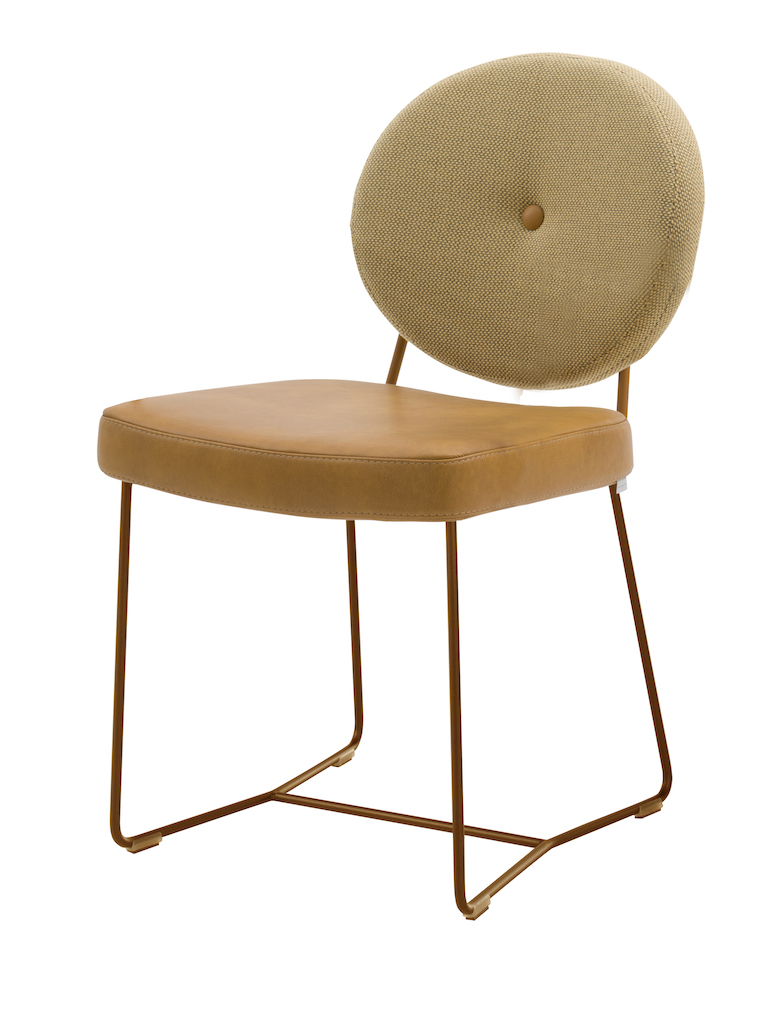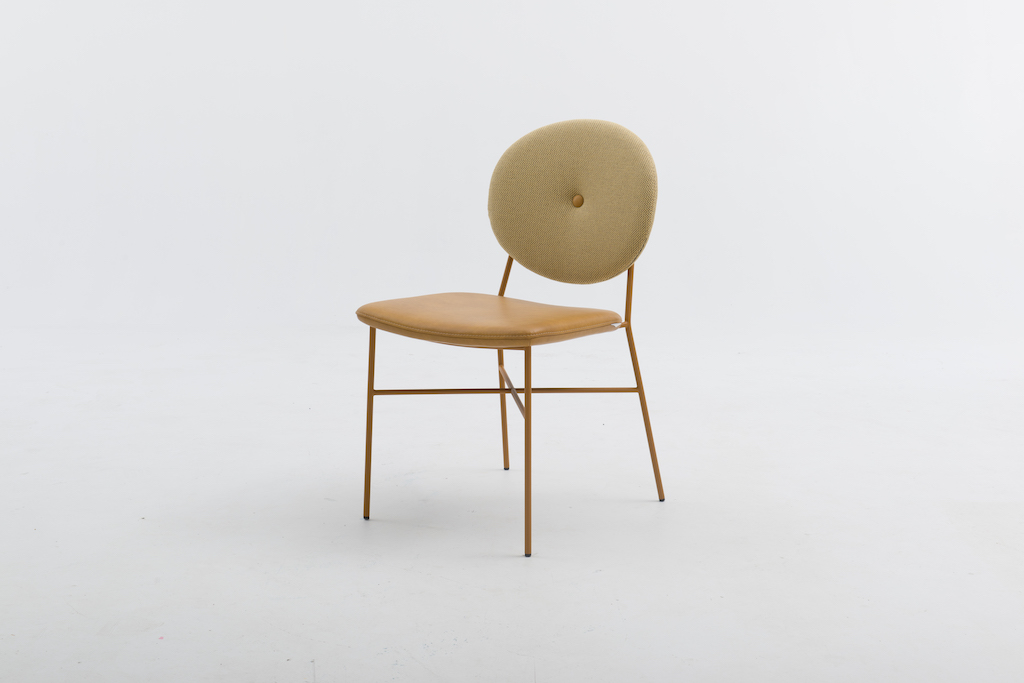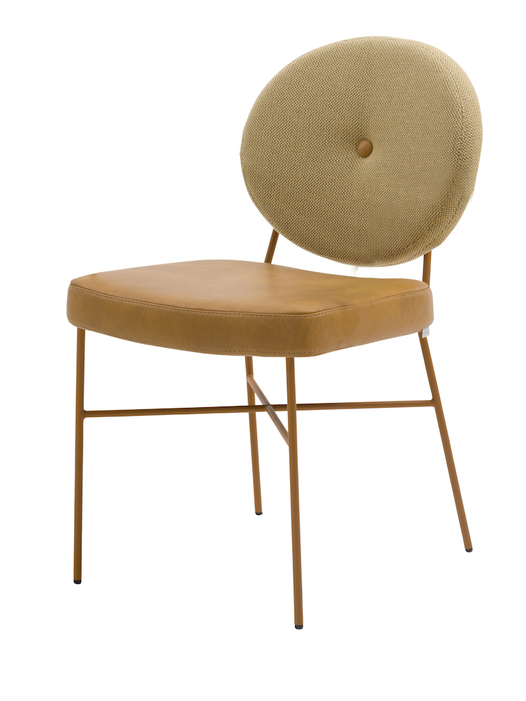 De Bert Plantagie Daisy is een eigentijdse stoel, met een charmante knipoog naar de Louis-stijl in de vorm van een ronde rug. Die kan voorzien worden van een ronde knoop in het midden, waardoor het model wat weg krijgt van een madeliefje.
