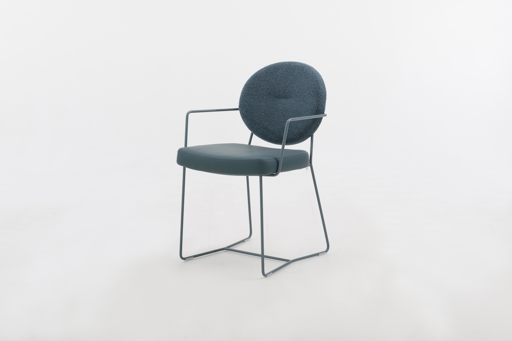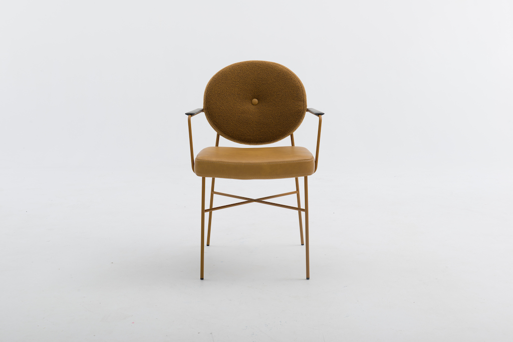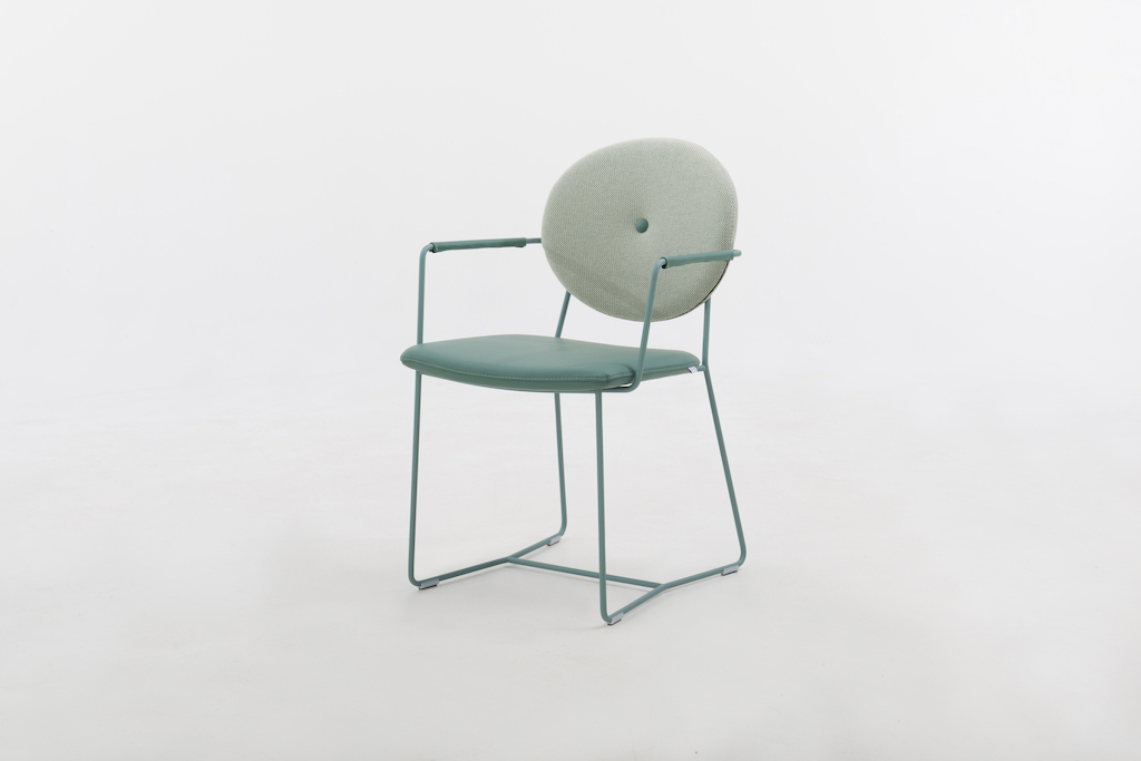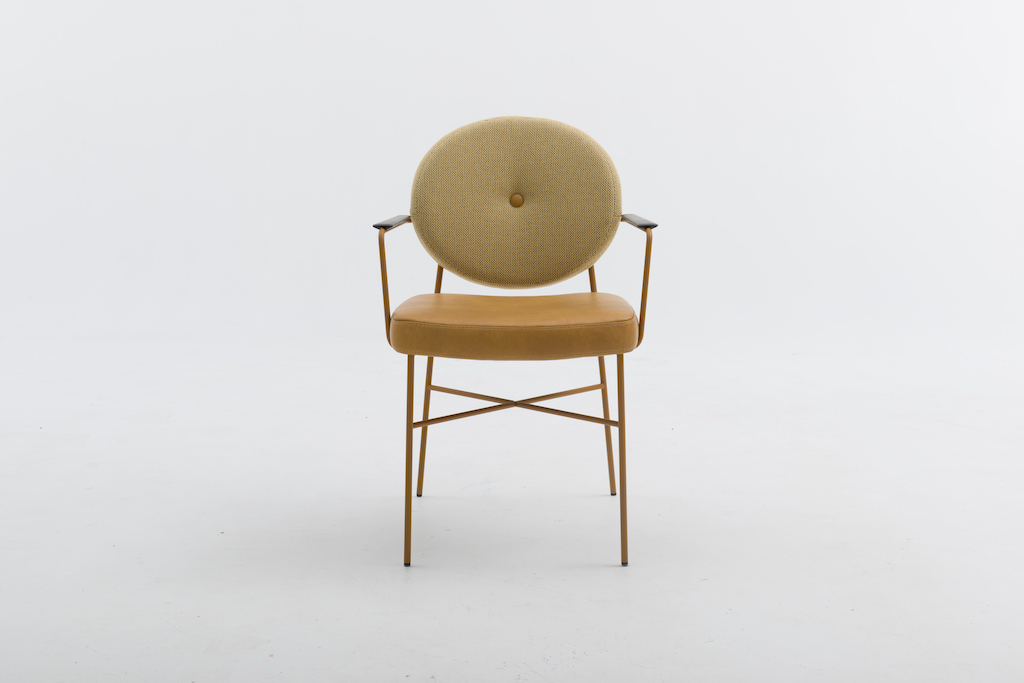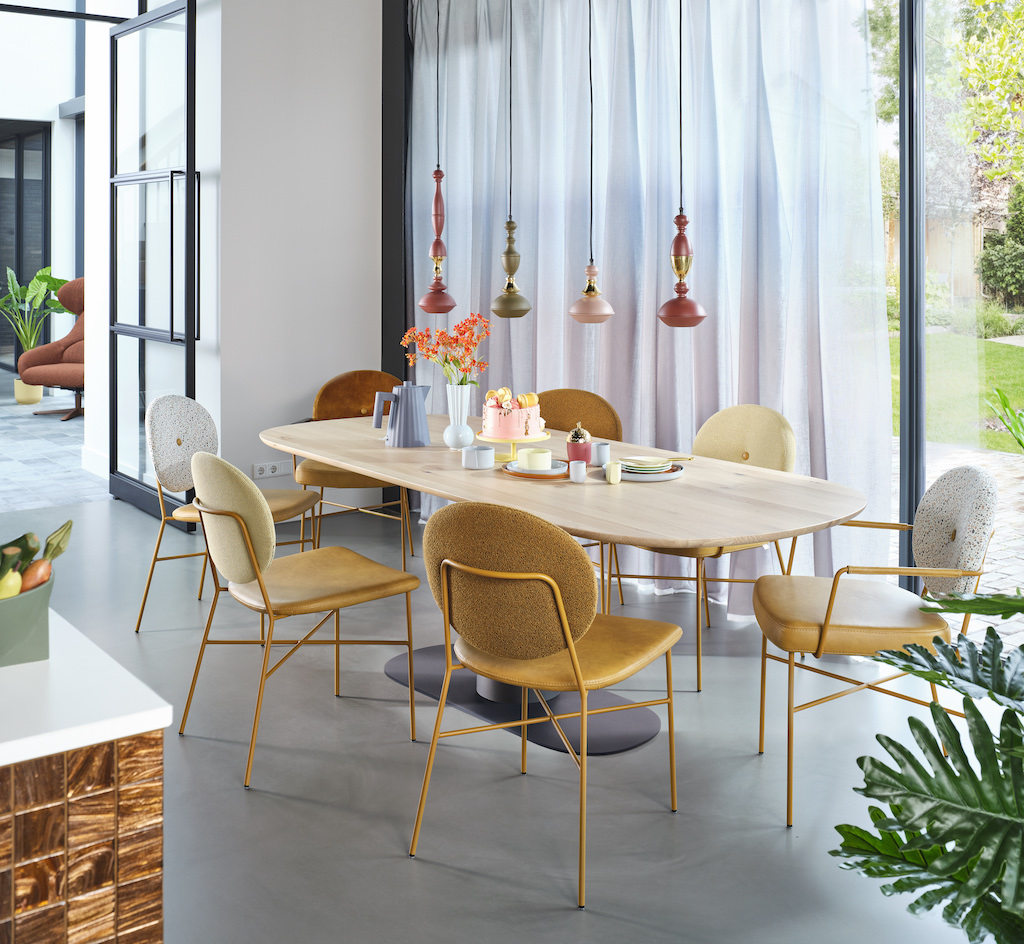 De Bert Plantagie Daisy is een eigentijdse stoel, met een charmante knipoog naar de Louis-stijl in de vorm van een ronde rug. Die kan voorzien worden van een ronde knoop in het midden, waardoor het model wat weg krijgt van een madeliefje.