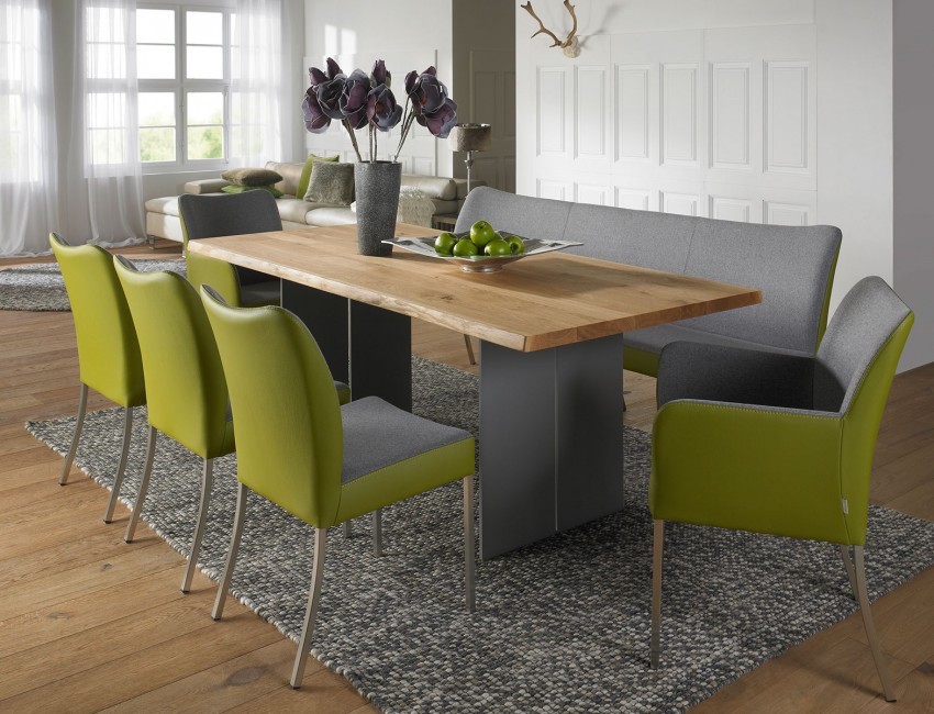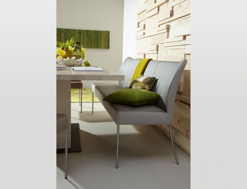 De Monica design bank van Bert Plantagie combineert perfect met de zeer populaire stoelen Duo (zonder-) en Spargo (met arm). De Bert Plantagie Monica kunt u naar wens uitvoeren in 2 kleuren of een trendy combinatie van stof en leder. De design eetkamerbank Monica schuift makkelijk aan en is in elke gewenste breedtemaat tussen 120 en 300 cm te verkrijgen en als hoekbank.