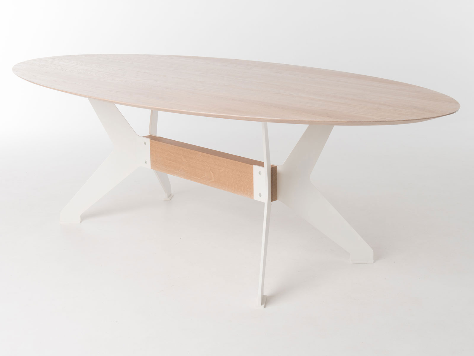 Een prachtige, bombastische design tafel, dat is de Bert Plantagie Bixx ten voeten uit. Met een stevig onderstel dat standaard bestaat uit naar buiten lopende RVS poten en een houten tussenbalk. De stevige RVS poten kunnen in elke gewenste RAL kleur worden geleverd voor een meer persoonlijke touch. Het tafelblad van de Bixx is leverbaar in 30mm of 40mm dikte en in vierkante of ovale vorm.