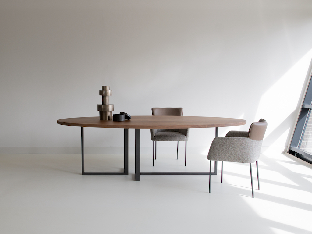 Het strakke, gestileerde frame van de Bert Plantagie Eris design tafel kan symmetrisch of juist asymmetrisch uitgevoerd worden. Voor wat betreft het blad heeft u de keuze uit drie vormenen eiken of noten. Ook het bijzondere premium kopshout behoort tot de mogelijkheden. Hiervoor worden honderden houteinden met zichtbare groeiringen handmatig geselecteerd en gerangschikt. Samen vormen ze een uniek pronkstuk, waar het vakmanschap vanaf straalt.