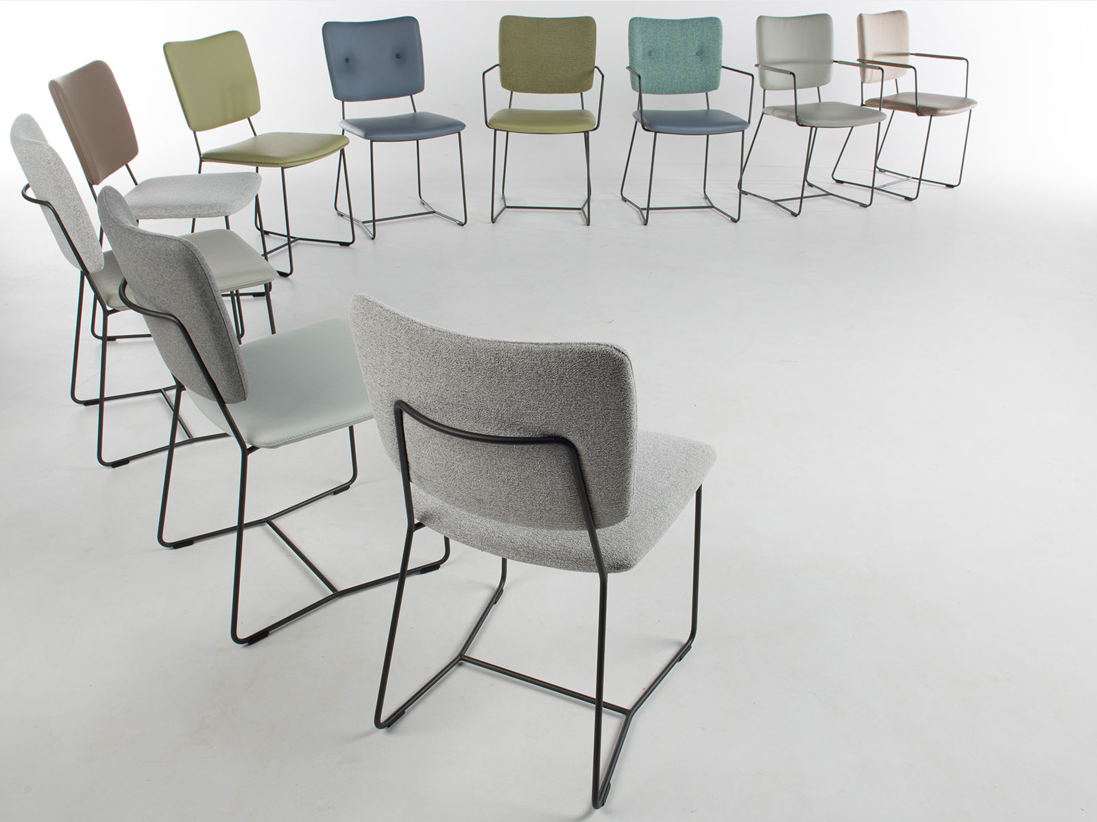 Design stoel Kiko van Bert Plantagie is een prachtig luchtig design, waar naar hartenlust gevarieerd kan worden met kleur. Dit fijne draadstoeltje verkrijgt haar stevigheid door het deels massieve frame, dat verkrijgbaar is met of zonder (open) arm. Het zit- en rugvlak bestaat uit een subtiel gebogen houten schaal die rijkelijk bekleed is, waardoor het zitcomfort zacht en aangenaam is.