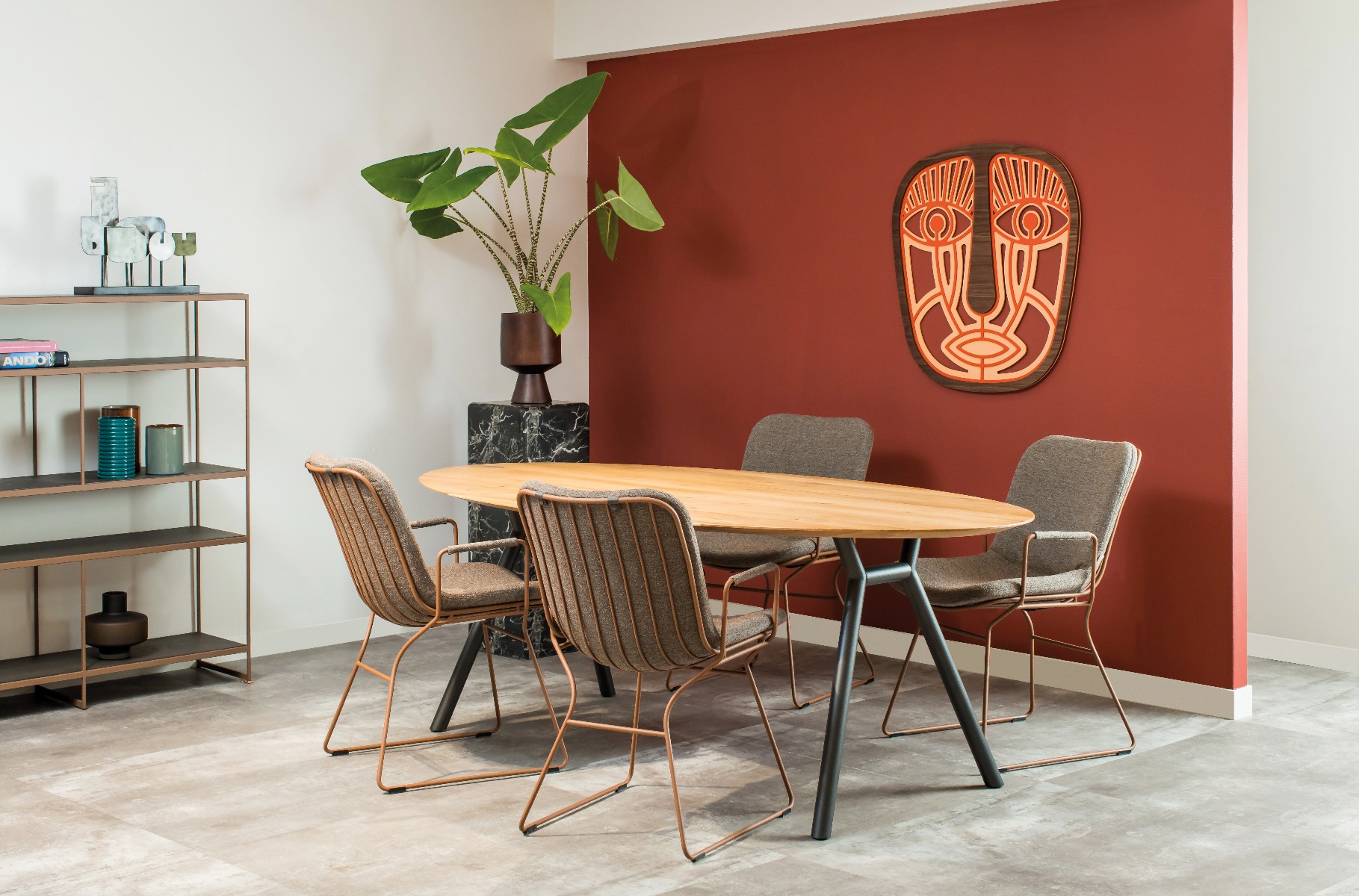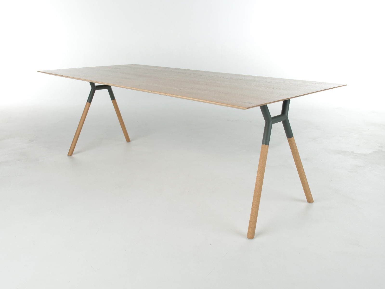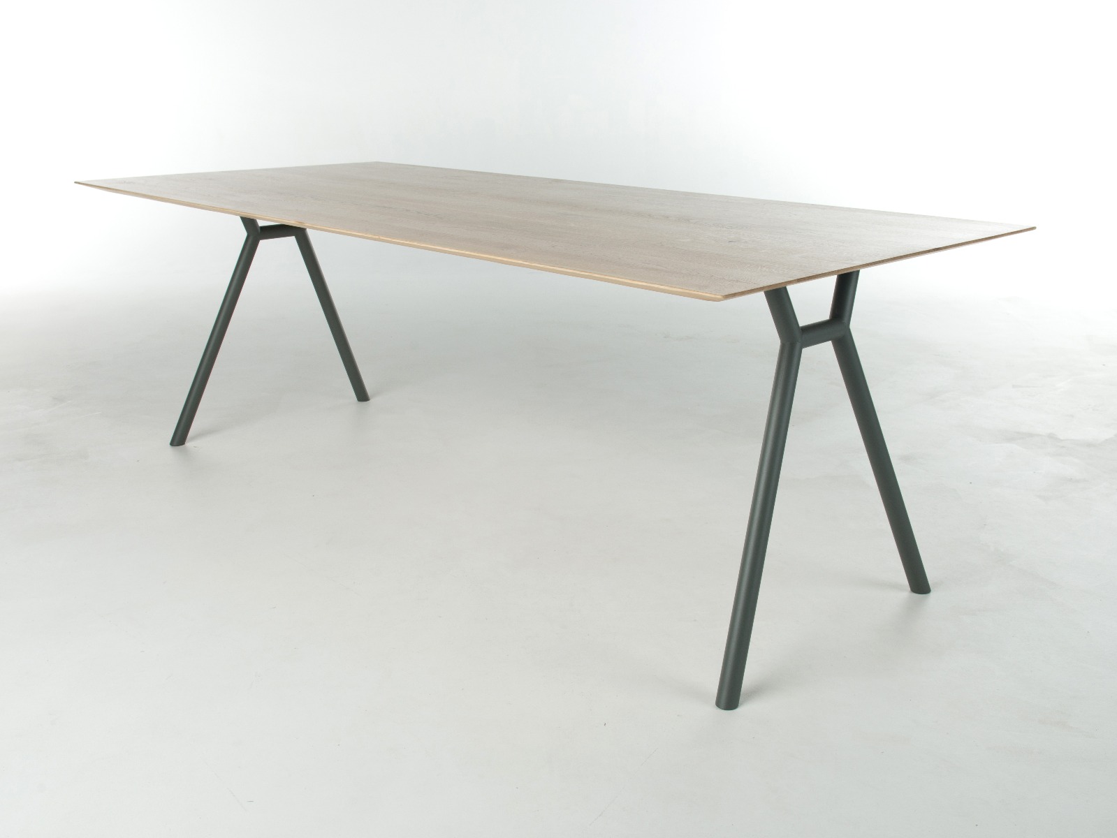 Vorm en functie zien zich verenigd bij deze rustiek eiken design tafel, die door het gebruik van verschillende materiaalsoorten een industriƫle en ambachtelijke uitstraling heeft. De Bert Plantagie design tafel Parade heeft iets uitstaande houten poten met steunen aan het blad verbonden. Dit biedt door hun trapeze-achtige vorm extra veel ruimte aan stoelen of een eetkamerbank.