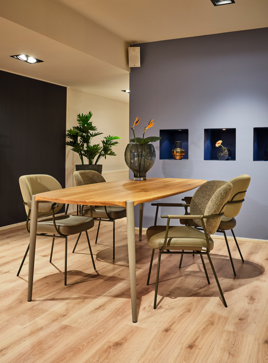 De Bert Plantagie Poppy: bijzonder en ambachtelijk design. Deze design eetkamertafel heeft een unieke en stijlvolle uitstraling door het rechte maar toch ook ronde tafelblad met een fraaie afwerking.