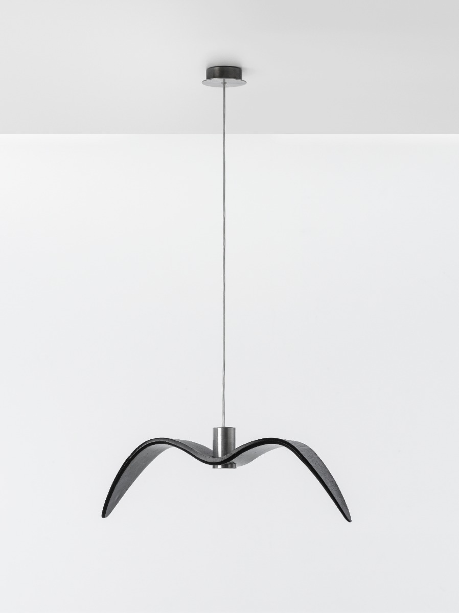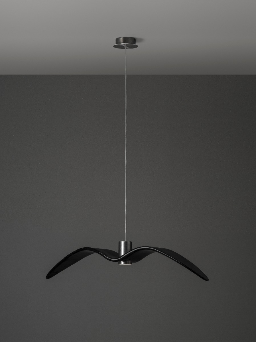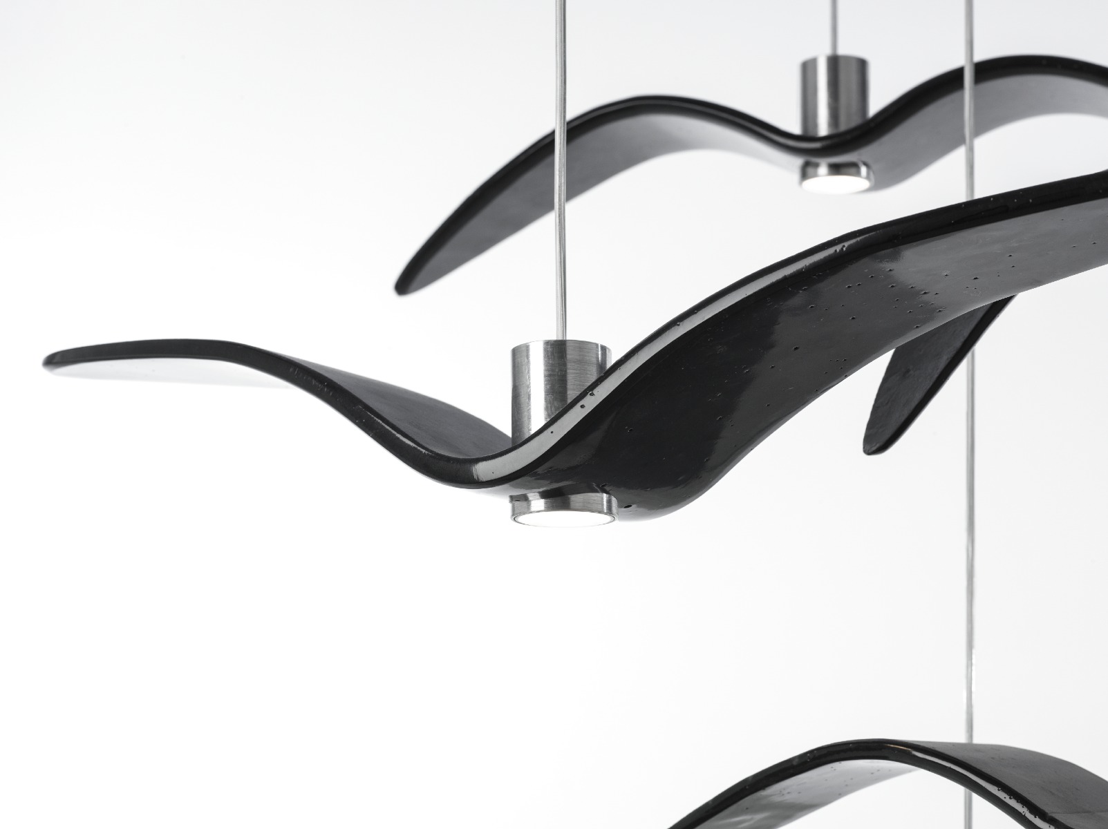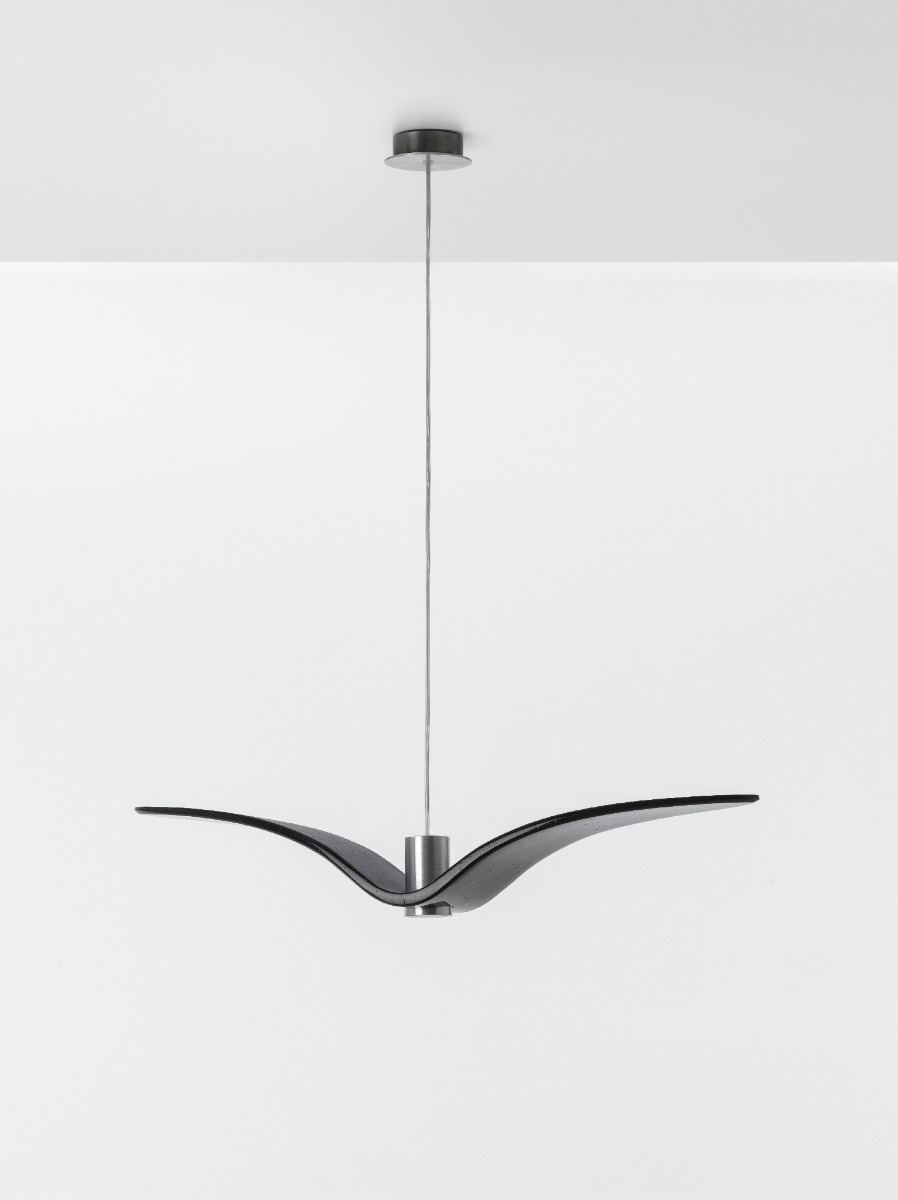 Geïnspireerd door de vrijheid en elegantie van de vogelvlucht geven de Night Birds hanglampen van Brokis poëtische dynamiek aan elk interieur. Uniek is de productie waarbij glas in een mal wordt gesmolten en gebogen, waardoor subtiele nuances in de vleugelvormen ontstaan en elke lamp een eigen kleur krijgt. Minimalistische LED-lichtbronnen in gelakt en gepolijst aluminium benadrukken de strakke uitstraling. De collectie omvat drie lampen met verschillende vleugelhoudingen, leverbaar in lichte en donkere varianten. Vanafprijs weergegeven.