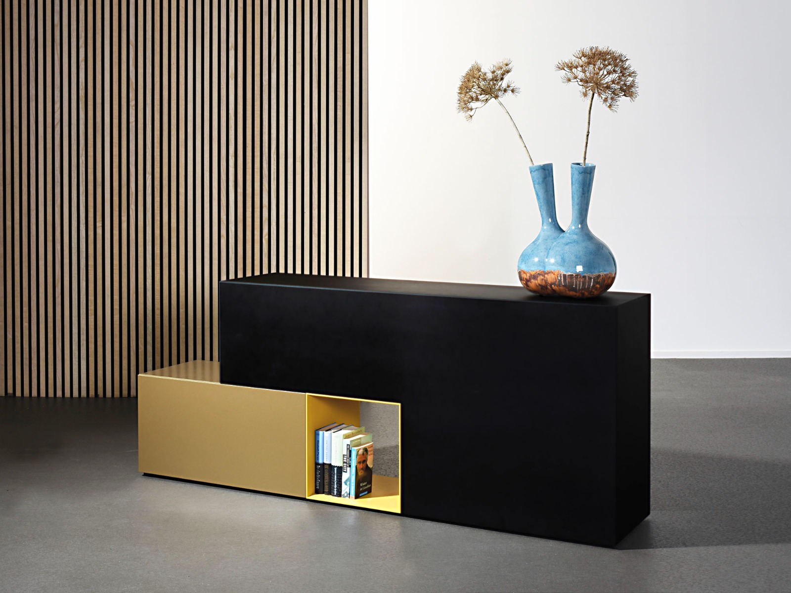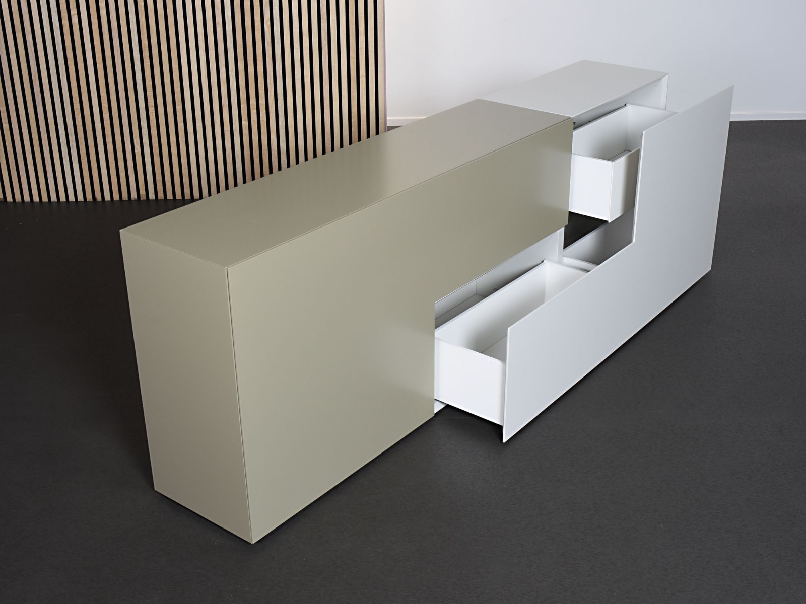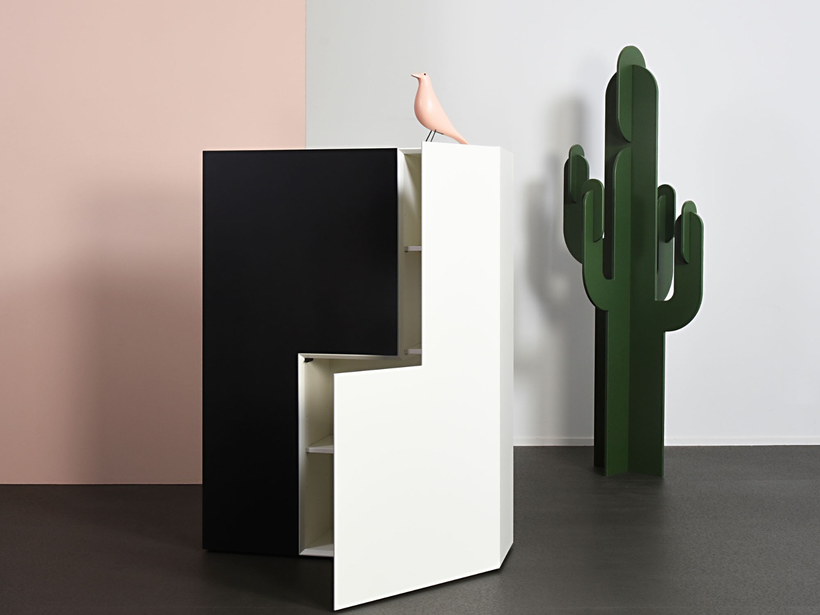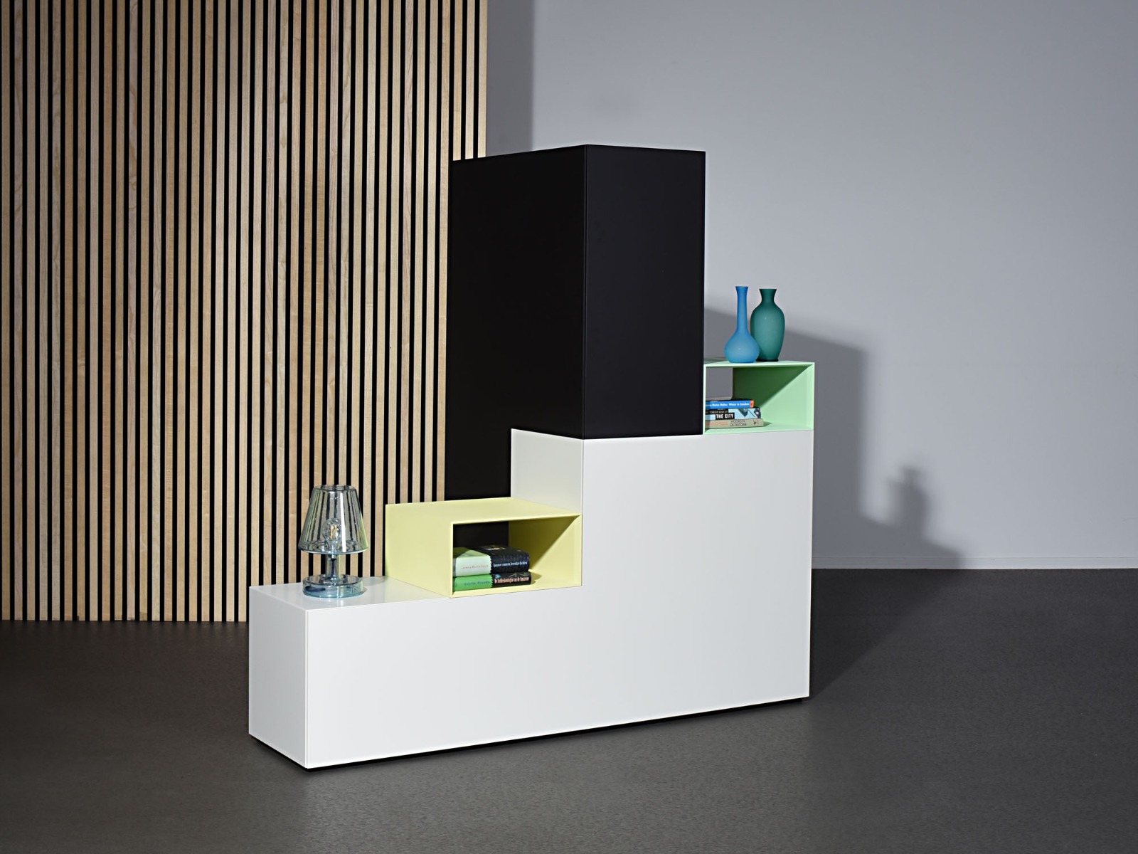 De stijlvolle L-vormige Réflexion kast heeft een breed scala aan toepassingsmogelijkheden in uw interieur. De deuren vallen prachtig in de kast door verstek gesneden binnenzijden van de deuren en randen. Combineer twee Réflexion kasten voor fraaie staande en/of liggende combinaties, waarmee uw een uniek hoekmeubel, dressoir of tv-wand creëert. De kast kan worden uitgebreid met twee verschillende maten nisjes in mooie contrasterende kleuren. Het pientere ontwerp, de waardevolle kwaliteit en diverse schikkingswijzen maakt de Réflexion kast een toekomstbestendig meubel waar u steeds opnieuw invulling aan kunt geven.