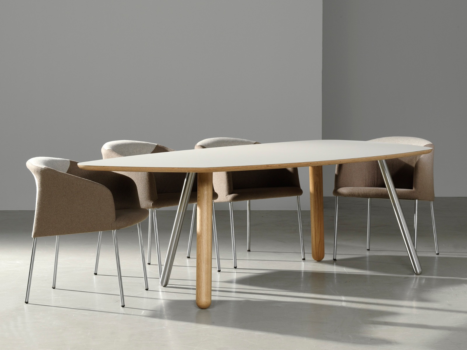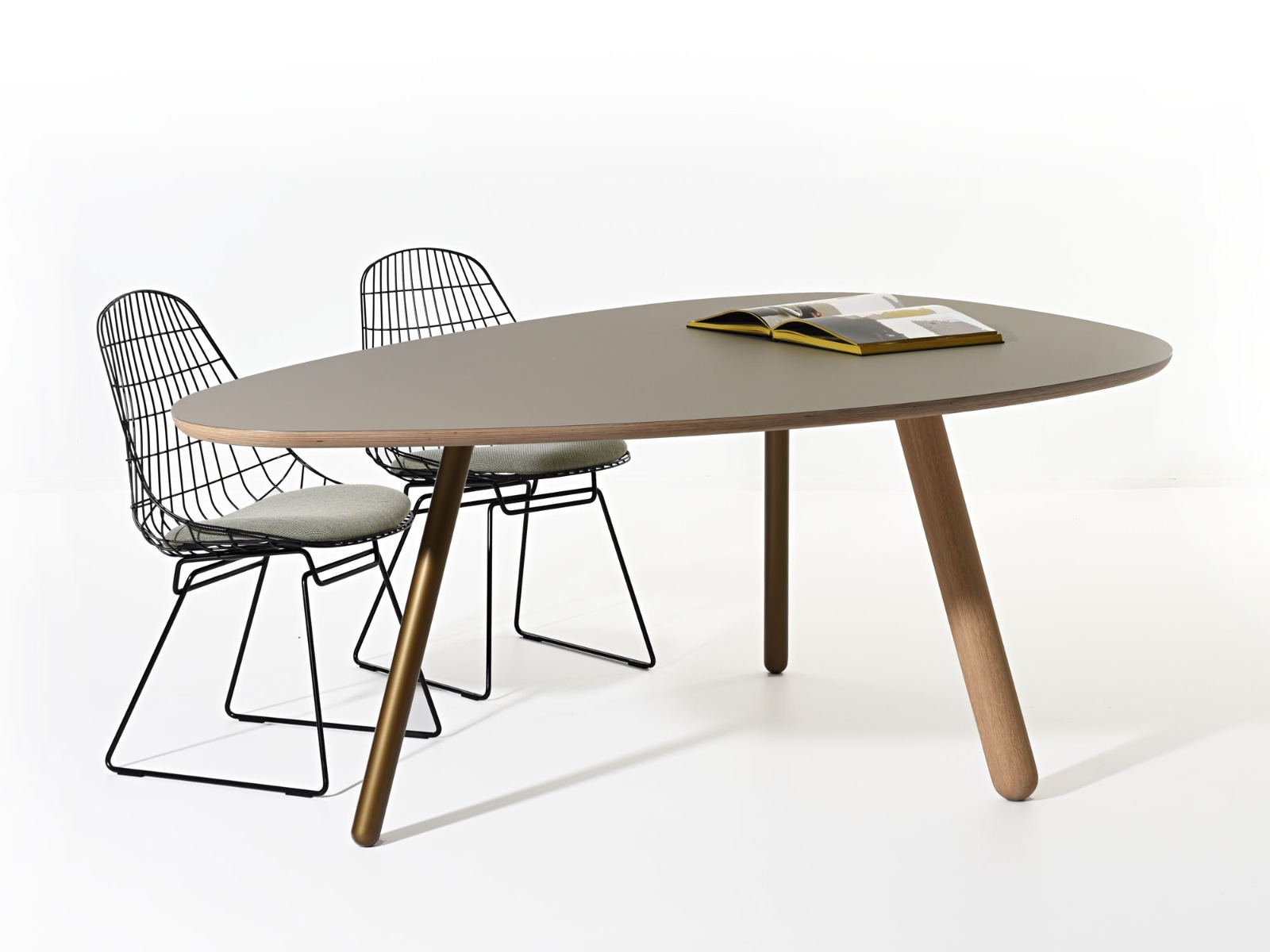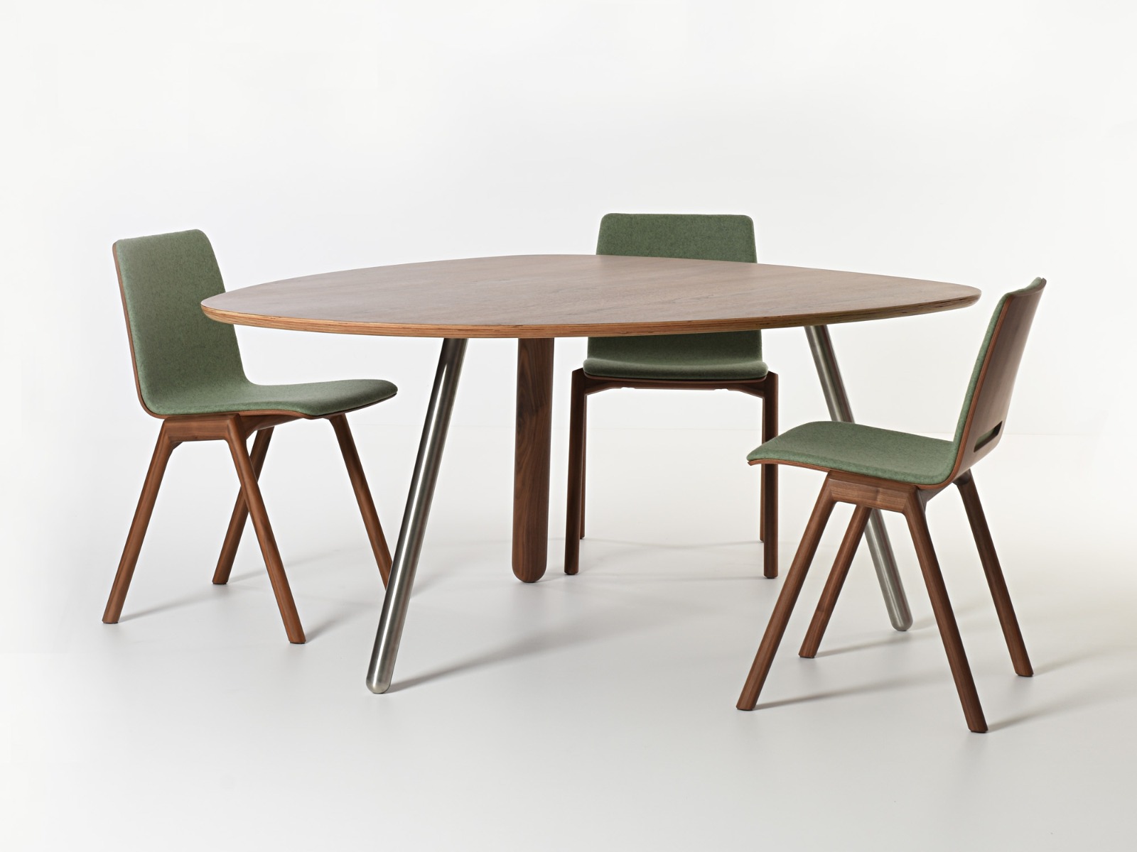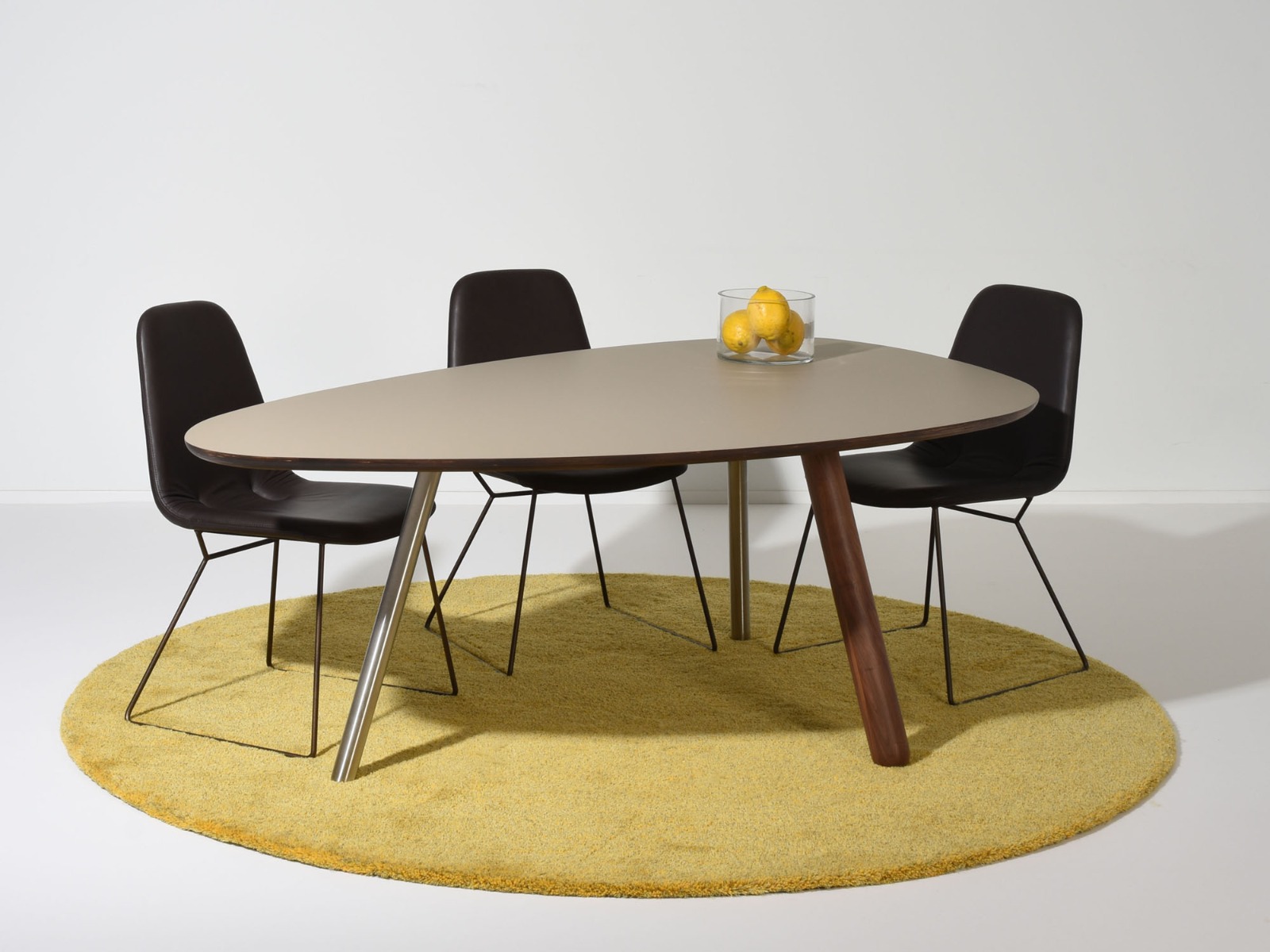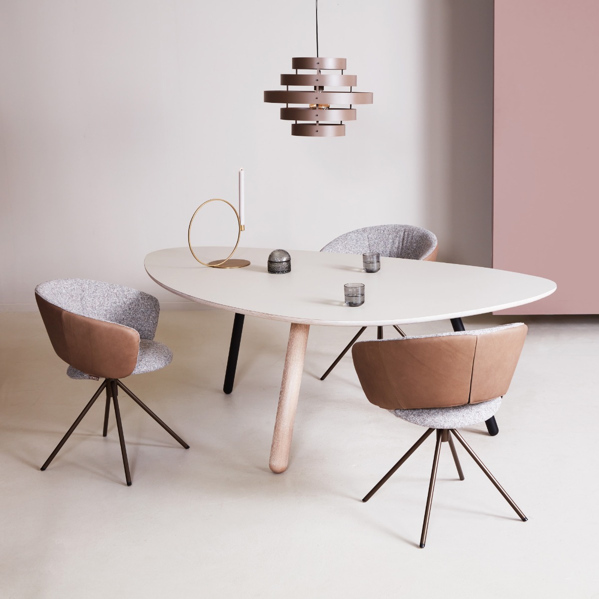 De Circlips tafel van Castelijn is ontworpen door Dick Spierenburg en Karel Boonzaaijer. Een tafel die vanuit iedere hoek een ander zicht geeft door zijn rond afgewerkte vormen. Het tafelblad kan in drie verschillende modellen worden toegepast, waardoor er altijd een tafel is die bij u past!Zijn schuin geplaatste poten geeft de Circlips een eigenwijze en speelse uitstraling. U kunt de poten samenstellen door te kiezen uit RVS, gelakt- of houten poten.