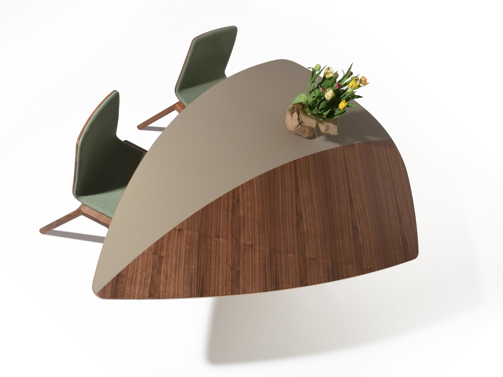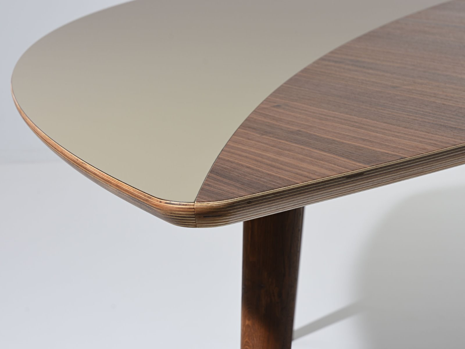 De RP-collectie van Castelijn heeft een groot assortiment aan mogelijkheden. Zo zijn er verschillende opties mogelijk met de vorm van het tafelblad. Het bladoppervlak kan in 8 kleuren Fenix toegepast worden. De vorm, de lichtgebogen deelnaad in de tafel doet nieuwste tafel lijken op een boomblad. Bij deze bladvorm kan er gekozen worden voor Fineer of een combinatie hiervan.De massief eiken poten zijn bevestigd aan een metalen frame, welke ook in 6 kleuren geolied kunnen worden. Een eigen samengestelde tafel, een echte blikvanger in uw interieur!