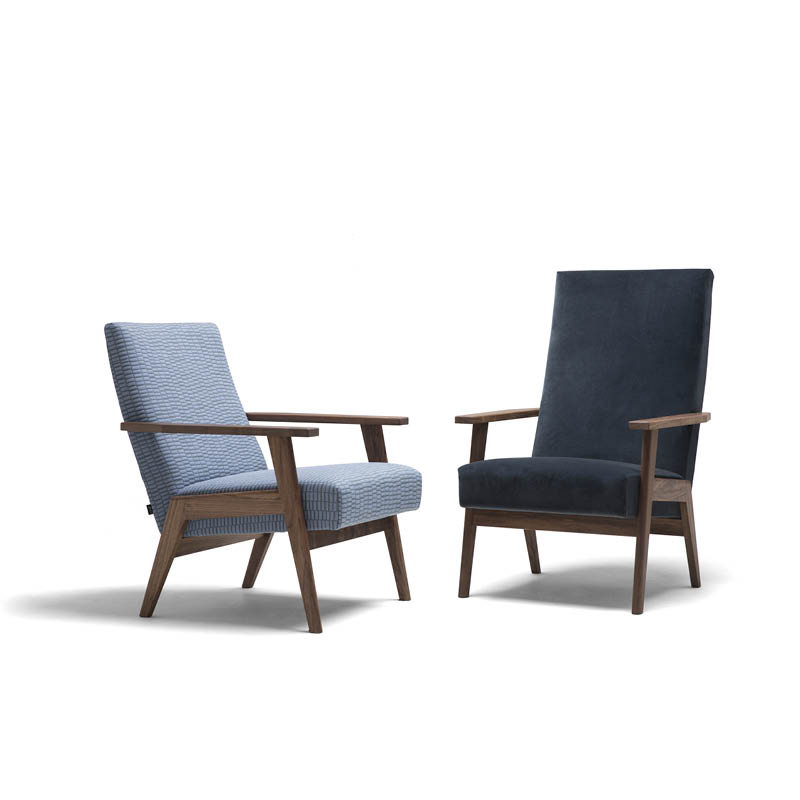 Het vertrouwde model uit 1963, feestelijk opnieuw uitgebracht voor het 60-jarig bestaan van Havee Meubelen in 2016. Deze iconische jaren ’60 design stoel heeft karakter en staat als een trouwe kameraad altijd voor u klaar. De fauteuil heeft een stevig frame van eikenhout, of – tegen een kleine meerprijs – van Amerikaans notenhout. U kiest zelf voor een lage of hoge rugleuning.