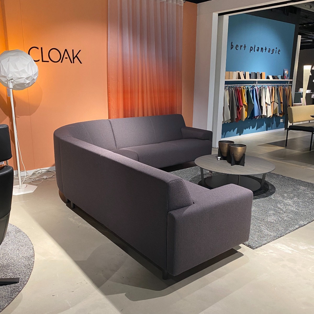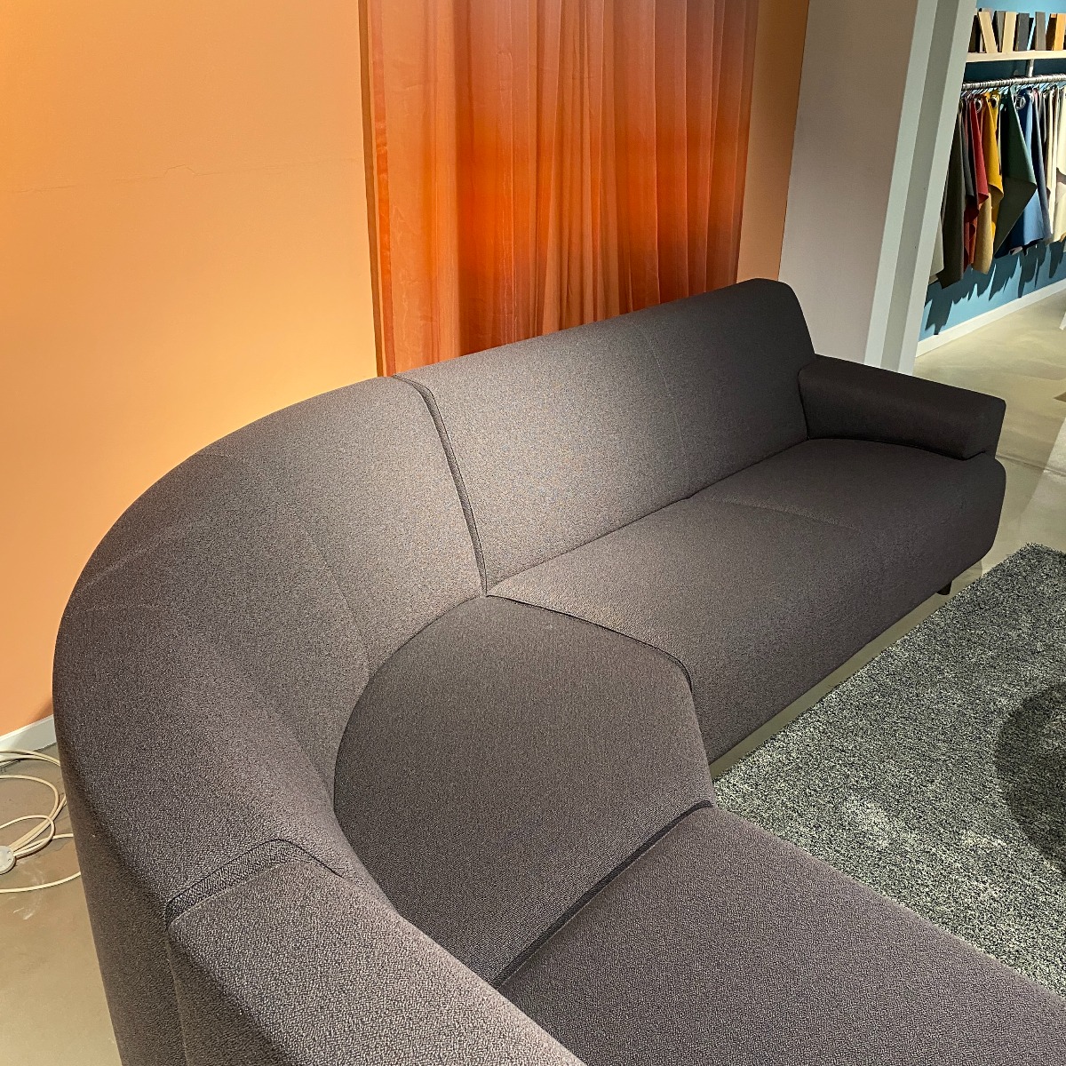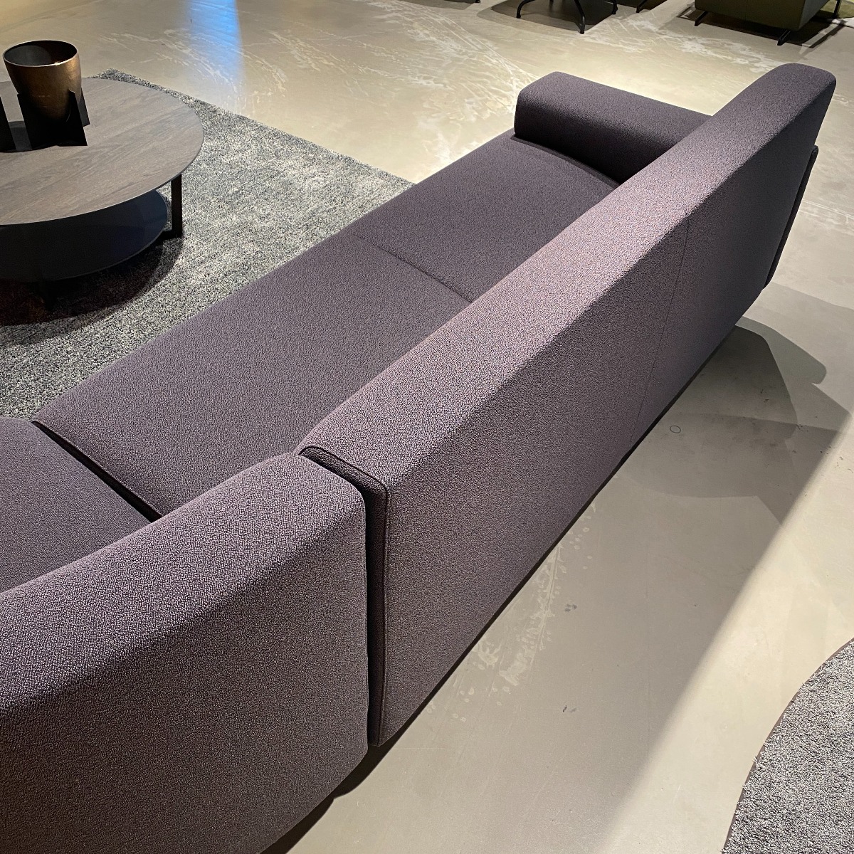 Strakke donkere hoekbank met ronding in de hoek, ideaal als basis voor een zithoek met stoere moderne uitsraling en om eindeloos mee te combineren. Deze Cloak hoekbank is nu voor een outlet prijs beschikbaar in onze showroom!