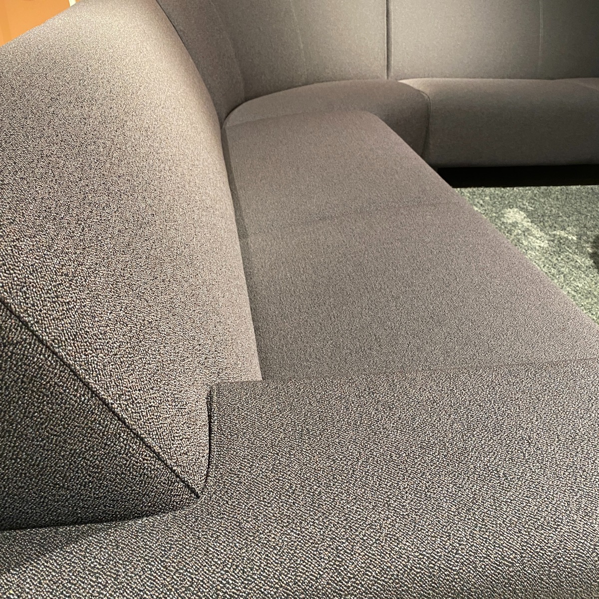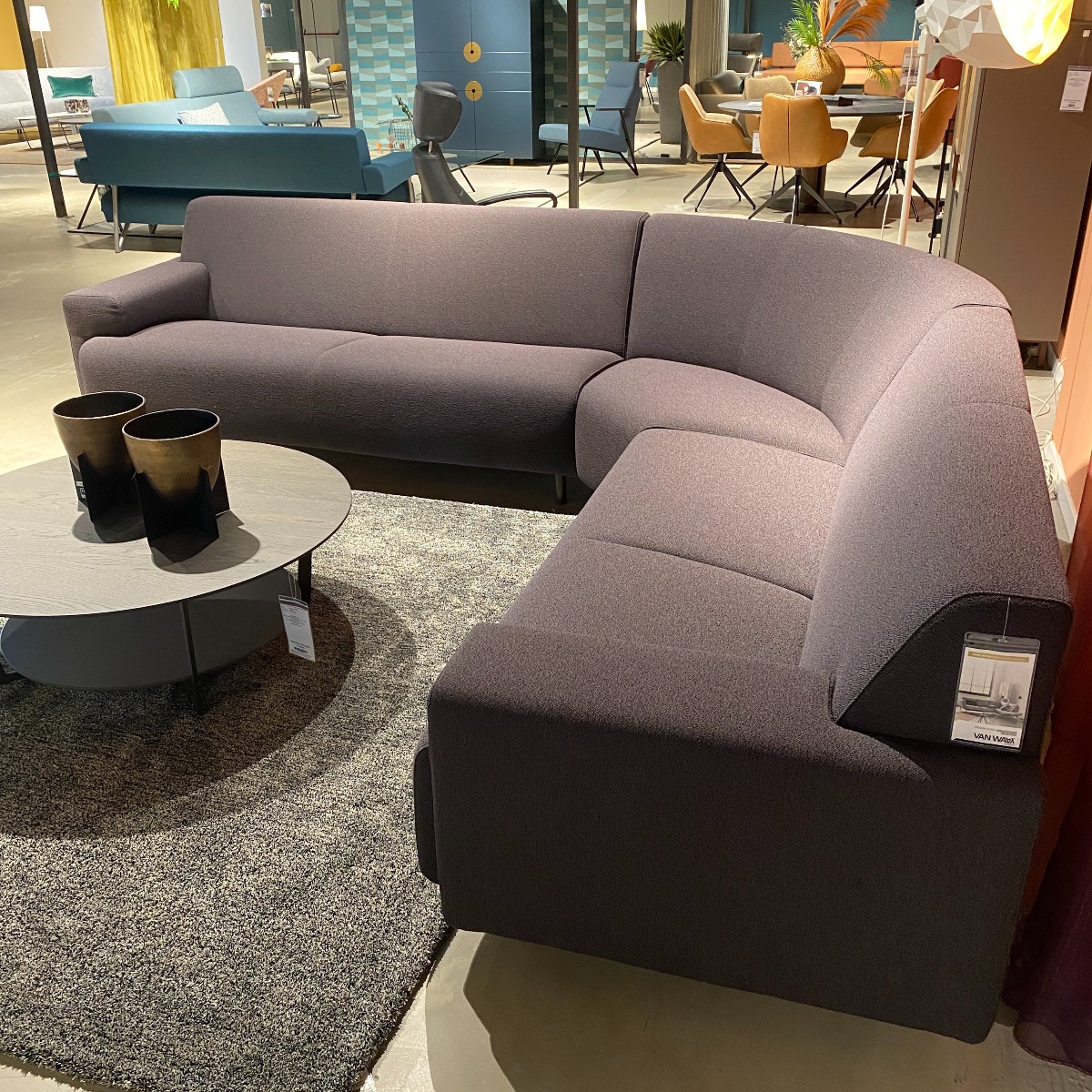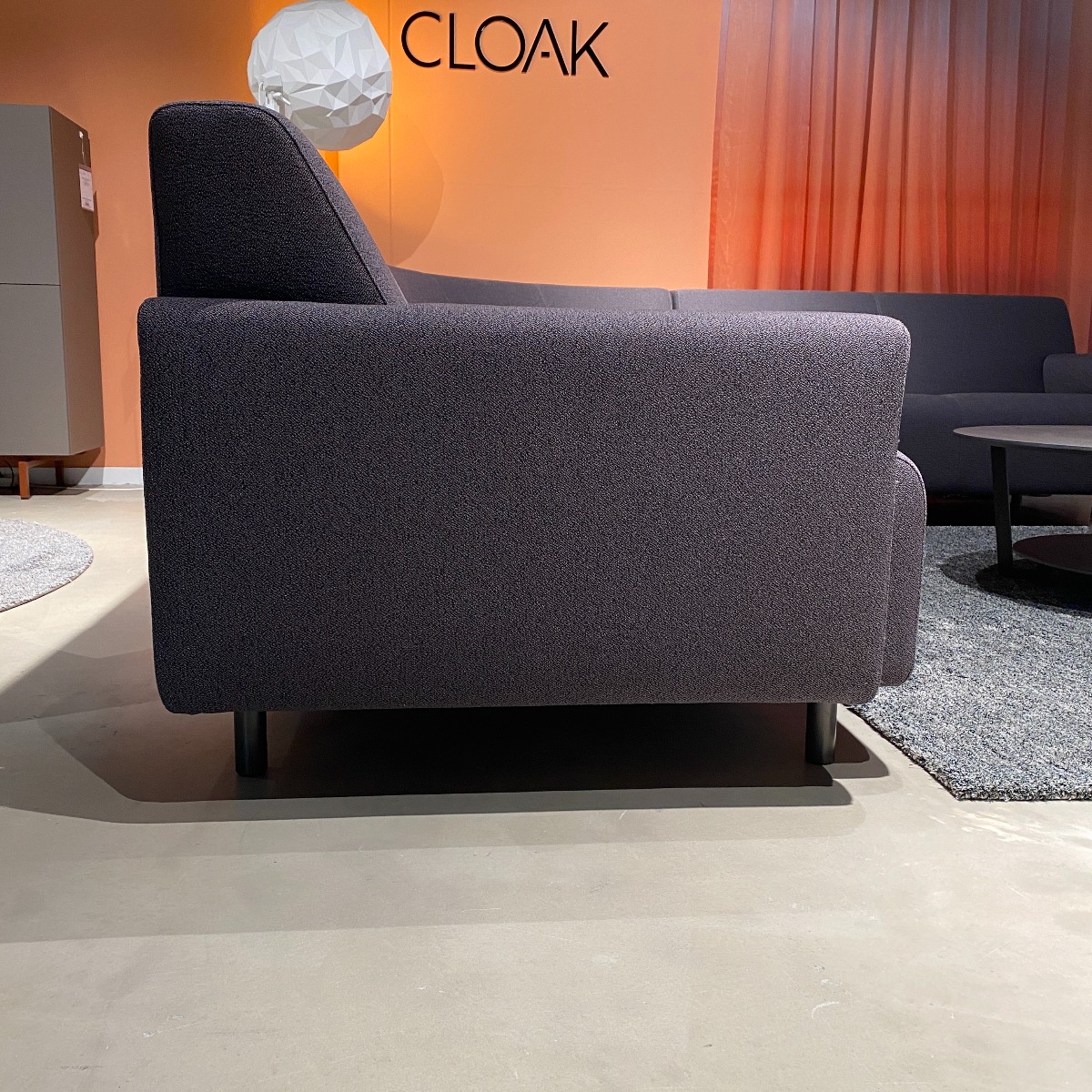 Strakke donkere hoekbank met ronding in de hoek, ideaal als basis voor een zithoek met stoere moderne uitsraling en om eindeloos mee te combineren. Deze Cloak hoekbank is nu voor een outlet prijs beschikbaar in onze showroom!