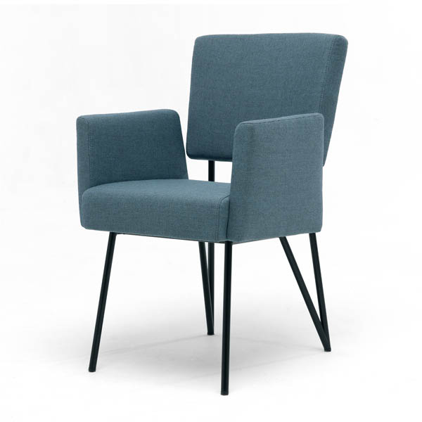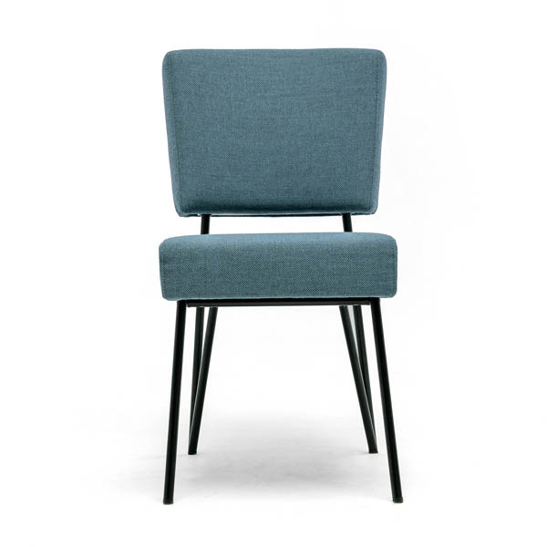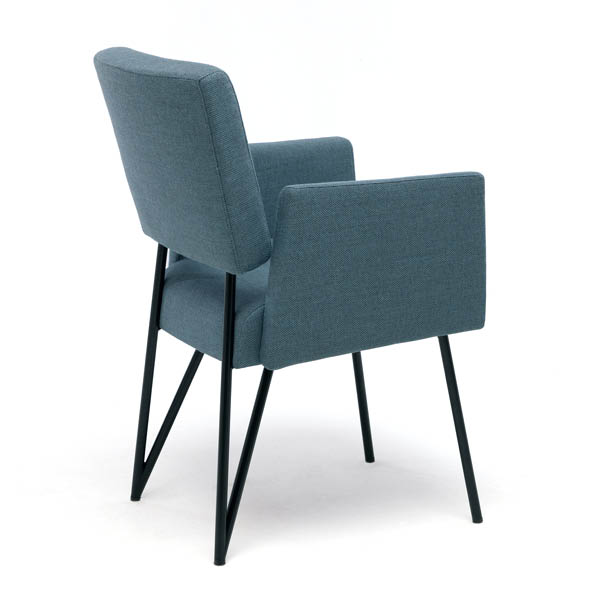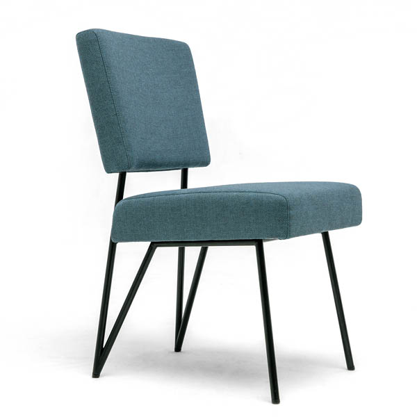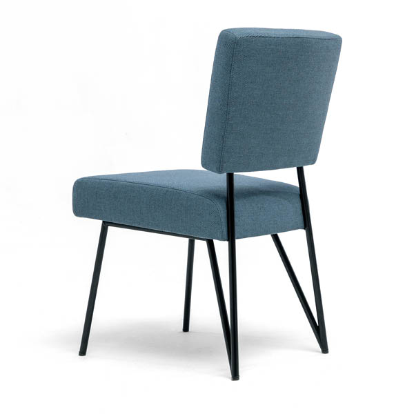 Moderne eetkamerstoel van het Nederlandse merk Cloak, ontworpen door Hans Daalder. De los ogende rug en zitting worden verbonden door een zwart stalen frame dat elegant doorloopt in de achterpoten. Strak Dutch Design, licht van vorm en verrassend comfortabel. Uitgevoerd in stof of leer, met of zonder armleuningen.