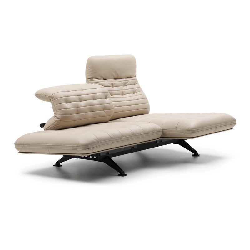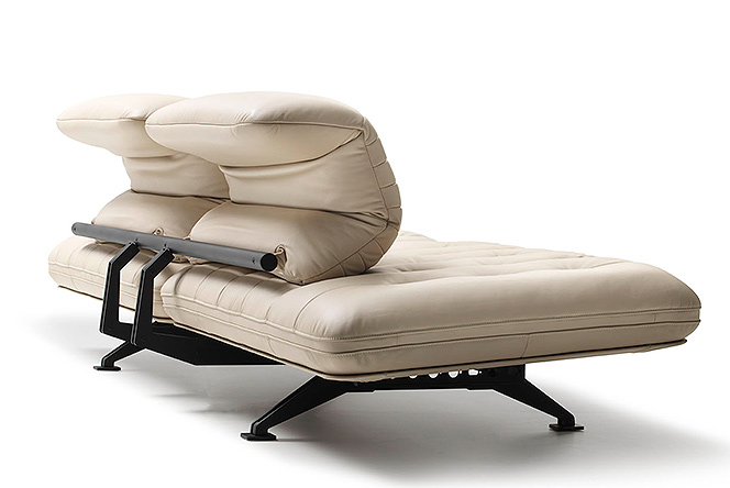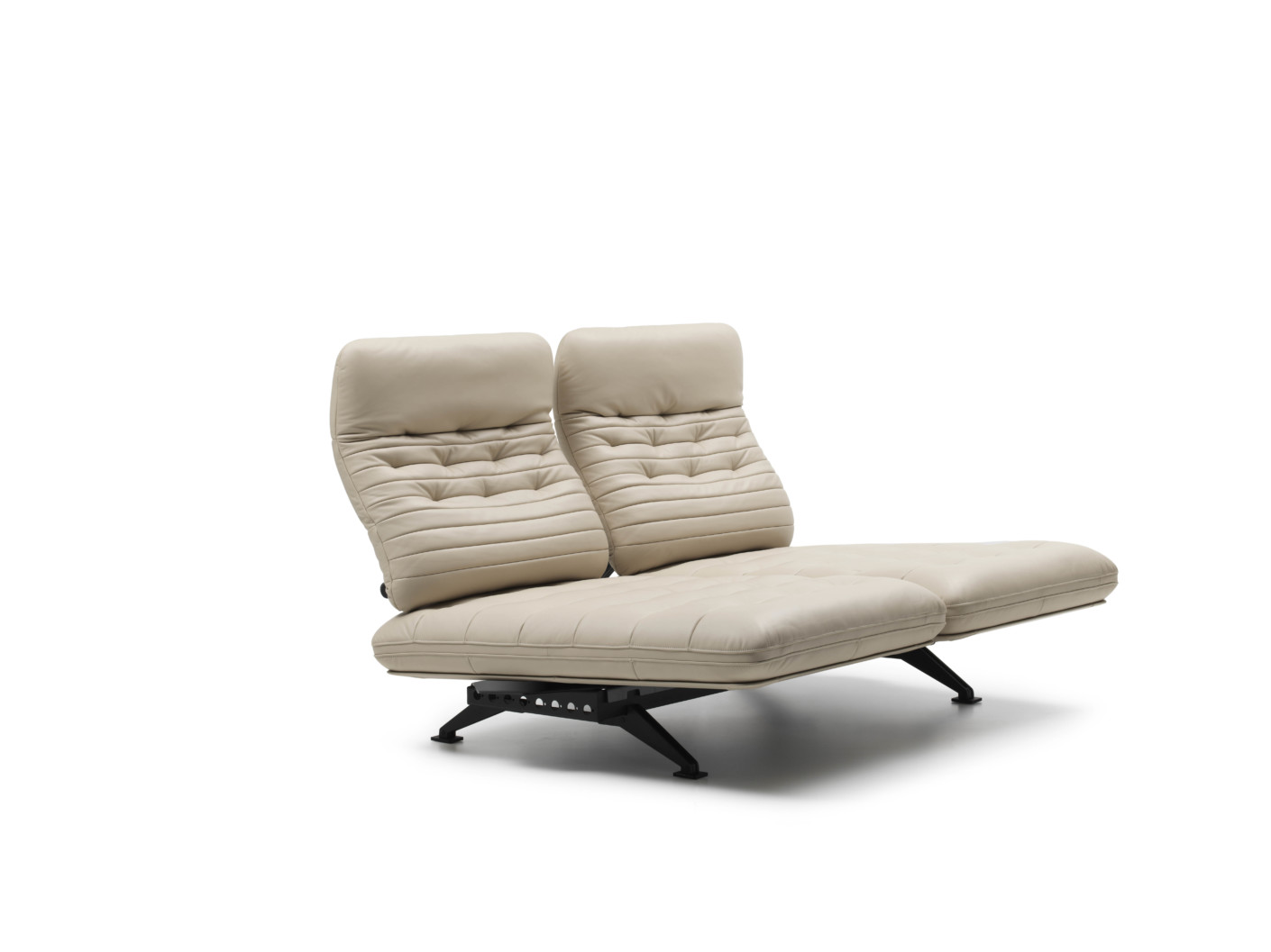De de Sede DS-490/02 bank is een meesterwerk van design en techniek, met een zachte bovenlaag die uitnodigt tot ontspanning en een gepatenteerde constructie die de bank transformeert van een actieve zit naar een lounge-eiland met matrasfunctie; handgemaakt op bestelling door Zwitserse specialisten in metaal- en houtbewerking en meester meubelmakers in leder, combineert deze bank retro avant-garde stijl met een blik op de toekomst van de Sede-collectie.