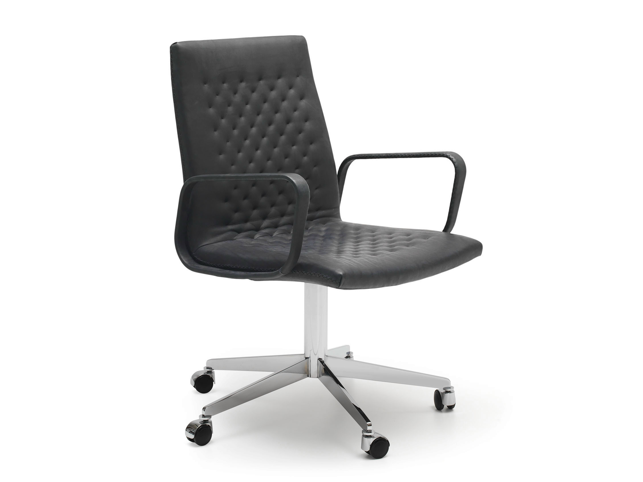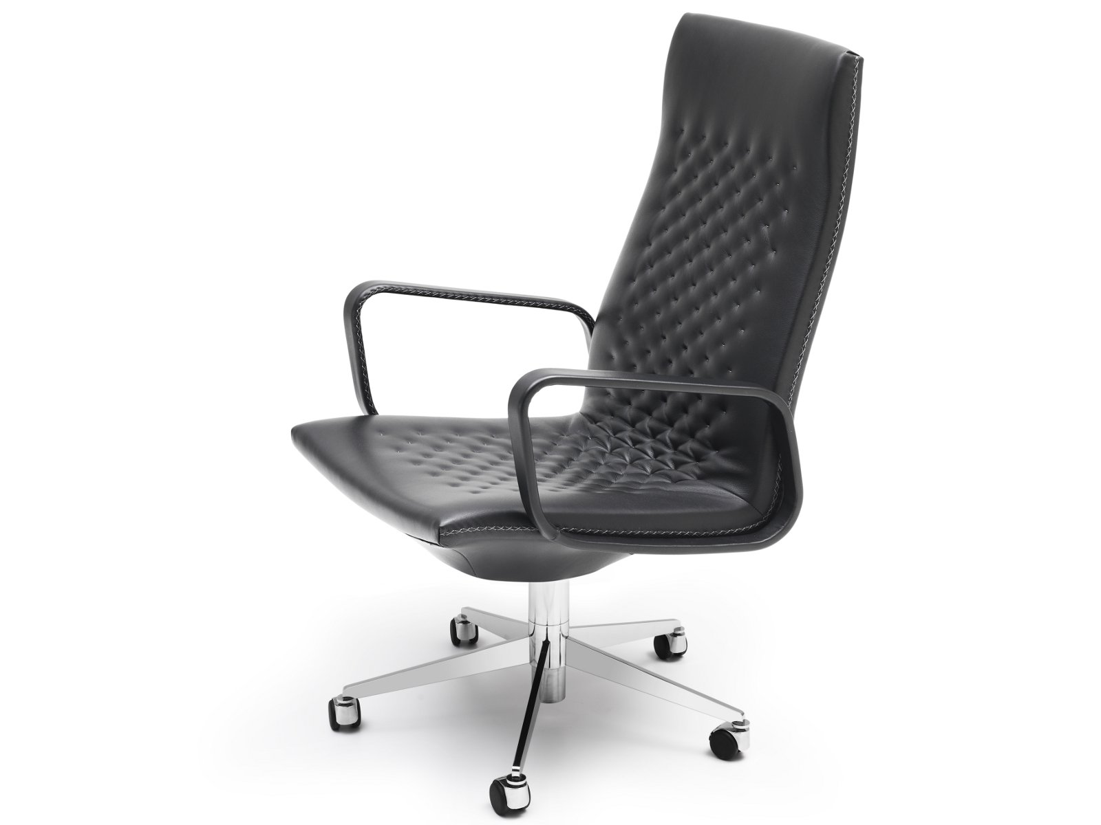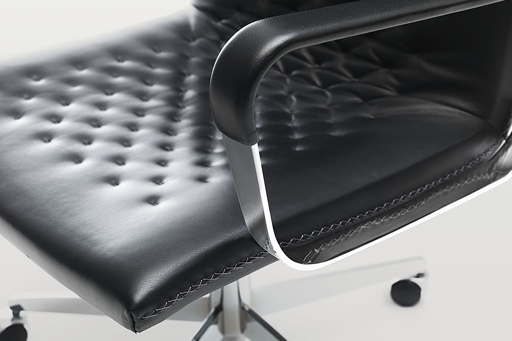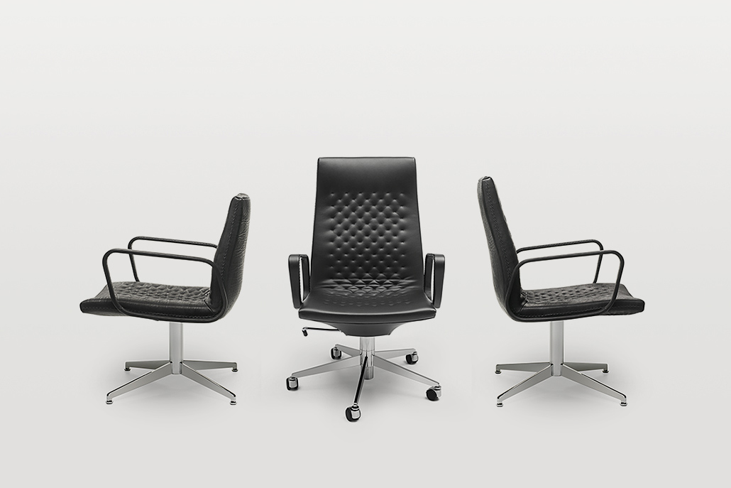 Exclusieve stoel collectie met een cutting- edge design en het DNA van een klassieker uit 1971. Zeer delicaat, elegant en luxueus in verschijning , maar zonder dat de functionaliteit en comfort er onder lijden. Zitting en rugleuning liefdevol met de hand genaaid met naald en draad, en expressieve stiksels aan de zijkanten. Verkrijgbaar in diverse uitvoeringen: Hoge of lage -back stoelen, met of zonder armleuningen, als een cantilever of vijf-sterren basis.