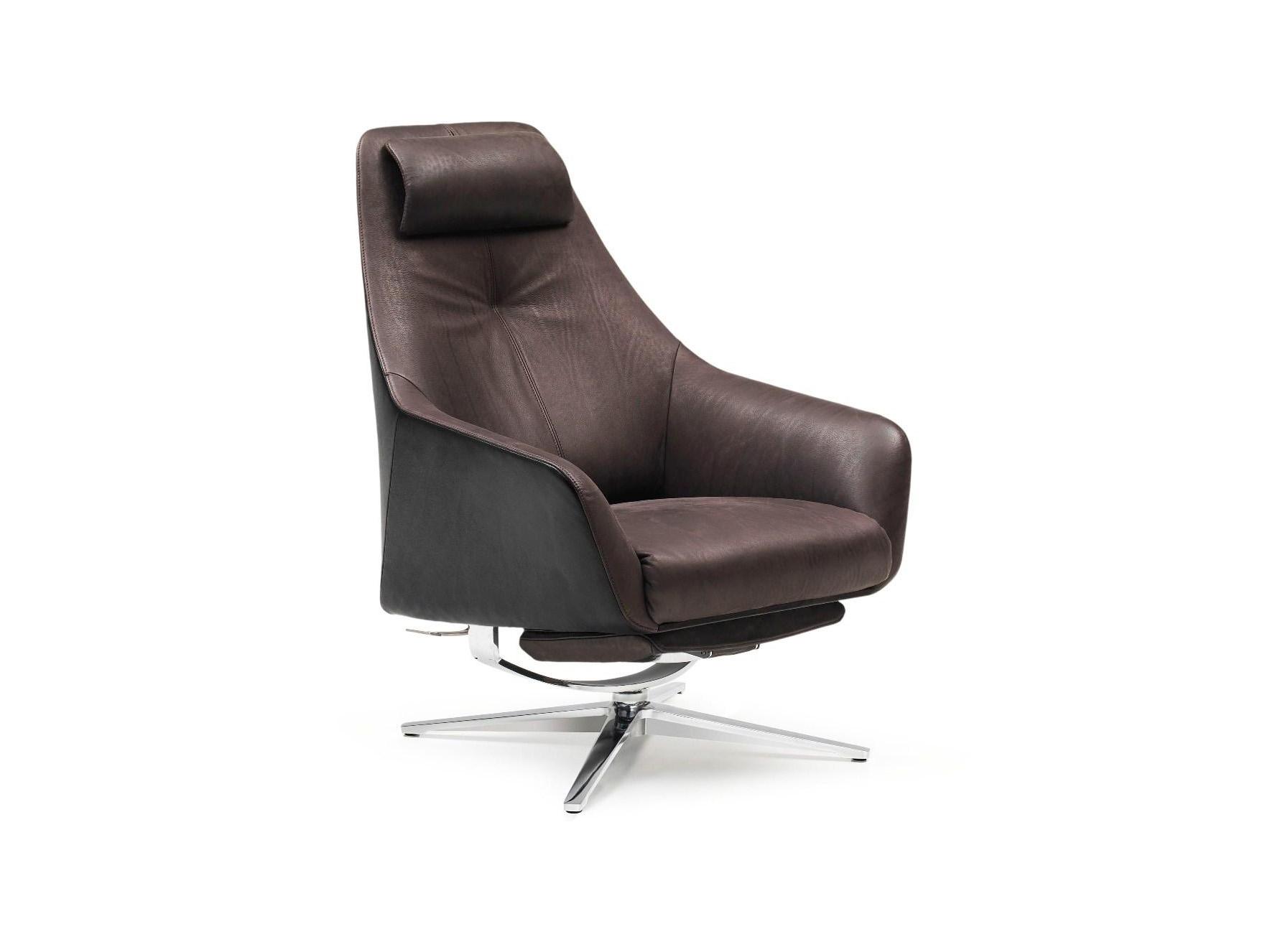 Een zelfverzekerde luchtige en een krachtige uitstraling. Hoge rug op een slanke stervormige basis biedt een verheffende zitplaatsen ervaring en voldoet aan de hoogste esthetische normen. Formele, spannende overgang tussen de zitting en de rug shell als een onderscheidend kenmerk. Diverse leer kwaliteiten en kleuren beschikbaar voor de buitenste en binnenste schil. Traploos verstelbare hoofdsteun. Kan worden gekanteld terug naar een eerder ongeziene voetsteun openbaren maximaal ontspannen comfort te bieden.