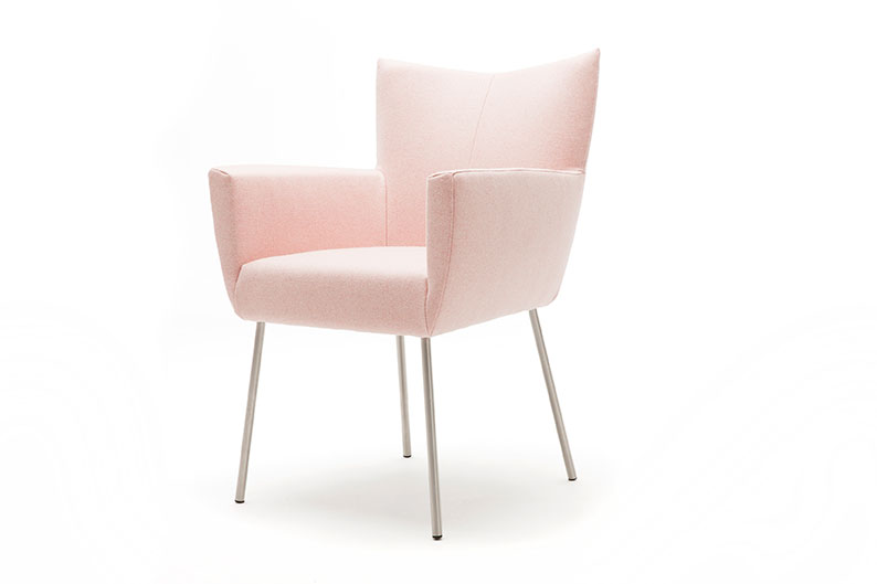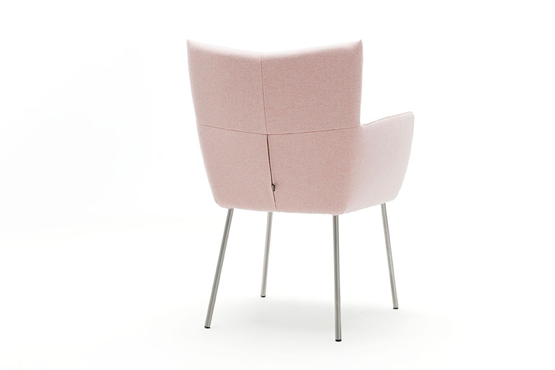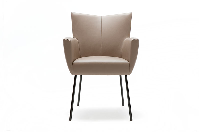 Moka is een stoel met een veerkrachtige zit en rug en is qua modellering royaal en comfortabel. De detaillering van het model is opvallend subtiel te noemen, terwijl het vakmanschap er vanaf straalt. Zo loopt de stoffering van de binnenzijde van de rug door naar de achterzijde en hetzelfde geldt voor de armleuningen, waardoor het model mooie afgeronde vormen heeft.