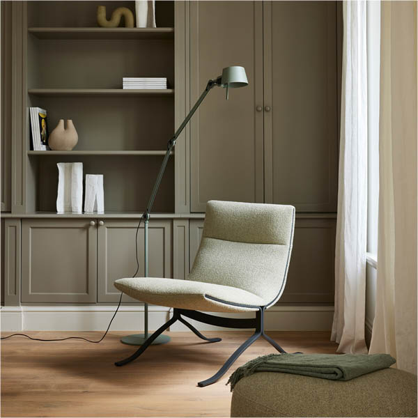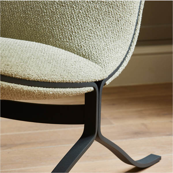 De Juno fauteuil van Eyye, ontworpen door Marike Andeweg, combineert een rank metalen frame met vloeiende lijnen en een uitnodigende zitkuip, waardoor hij zowel luxe comfort als een tijdloze, minimalistische uitstraling biedt; verkrijgbaar in diverse stoffen en kleuren, past deze elegante fauteuil perfect in moderne en klassieke interieurs.