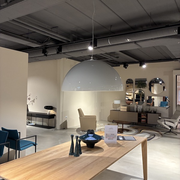 Deze grote uitvoering van 90 cm doorsnede is uitgevoerd in glossy white en nu met aantrekkelijke outletkorting verkrijgbaar bij Van Waay Interieurs in Benthuizen.