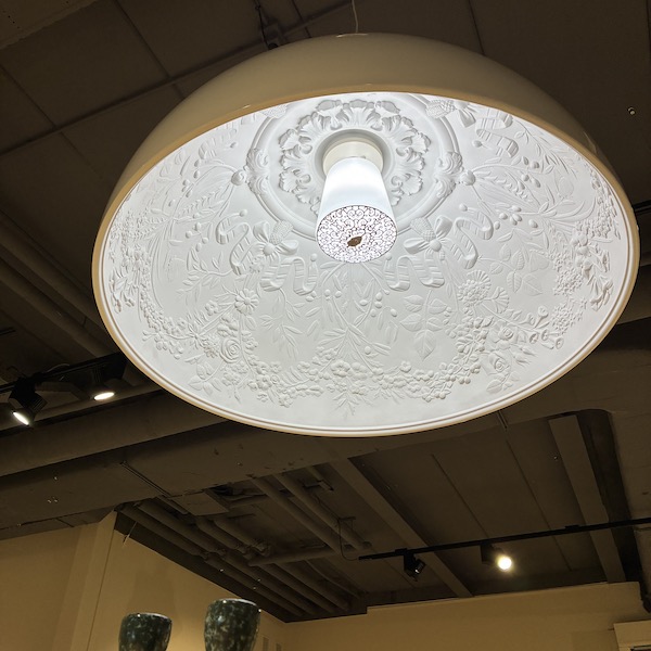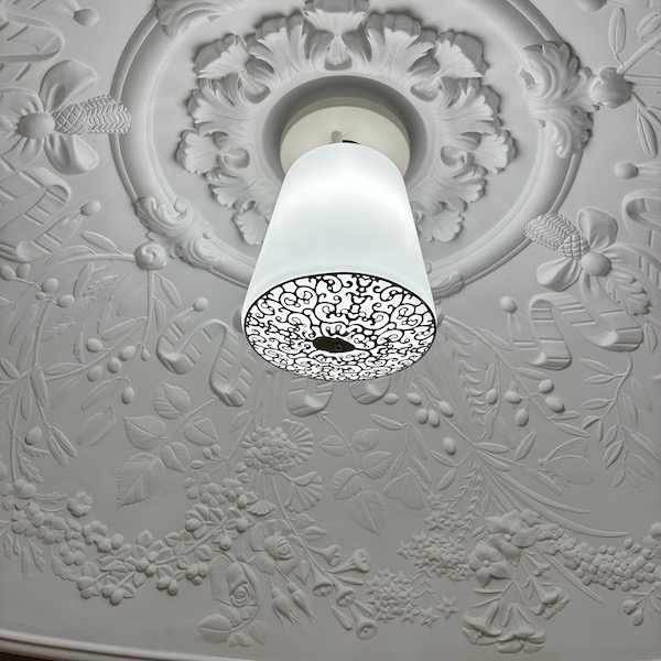 Ontwerper Marcel Wanders liet zich inspireren door klassieke plafonddetails uit oude herenhuizen en gaf die een moderne twist. Het resultaat is een functionele lamp die een sierlijke verrassing toevoegt aan elk interieur.
