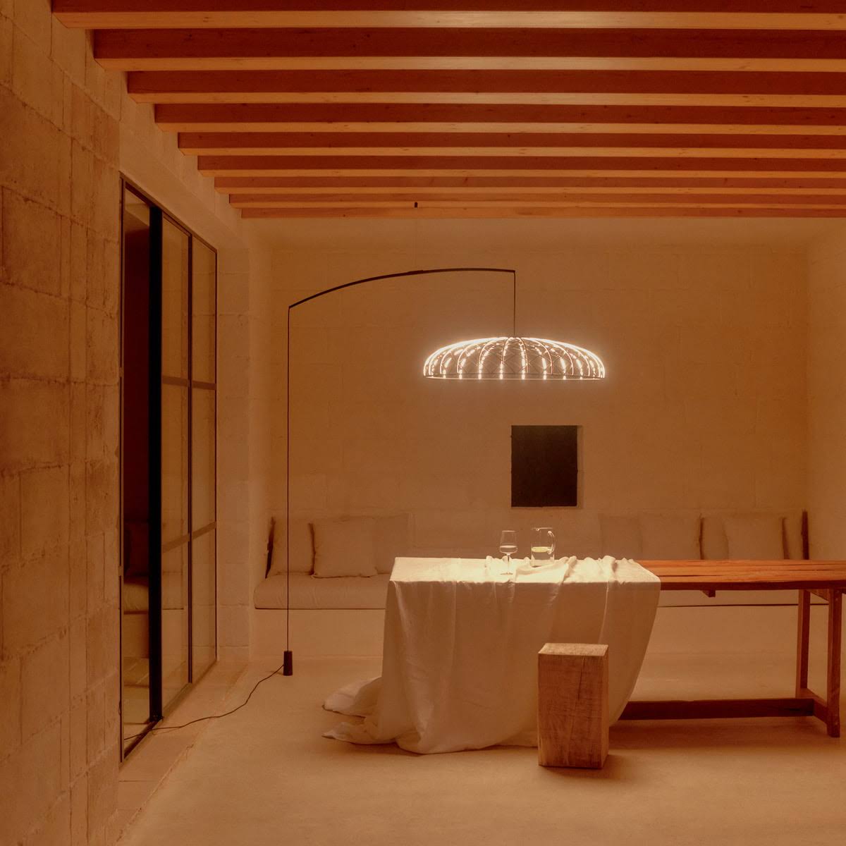 De Flos Skynest Motion hanglamp is ontworpen door Marcel Wanders. De design lamp is gemaakt van gerecycled polyester, aluminium en LED-buizen. Het snoer wordt over de muur of vrij omhoog geleid en vervolgens via een lange rail de kamer in. Dankzij de sierlijke vormgeving van de Flos Skynest Motion, komt de design hanglamp is ieder interieur tot zijn recht. Een echte blikvanger in de ruimte met een bijzonder licht effect.