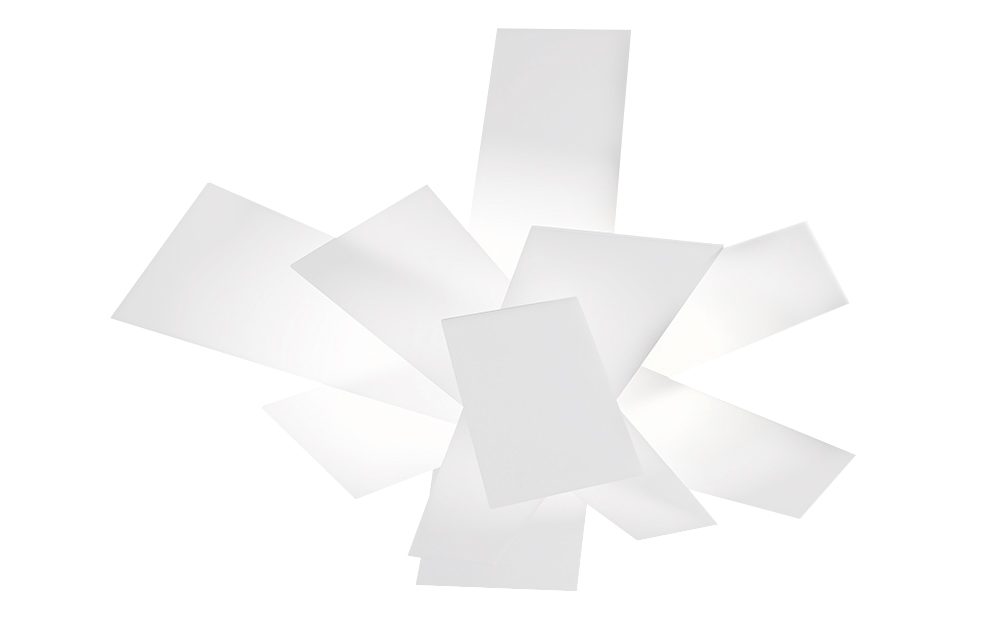 De Foscarini Big Bang plafondlamp is geïnspireerd op de oerknal en combineert ogenschijnlijke chaos met subtiele orde. Willekeurig geplaatste platen van gelakt metaal creëren een dynamisch lichtspel dat een groots effect op het plafond geeft. Gemaakt van metaal en methacrylaat, verkrijgbaar in wit en rood, onderhoudsvriendelijk en veelzijdig inzetbaar, ook als wandlamp.