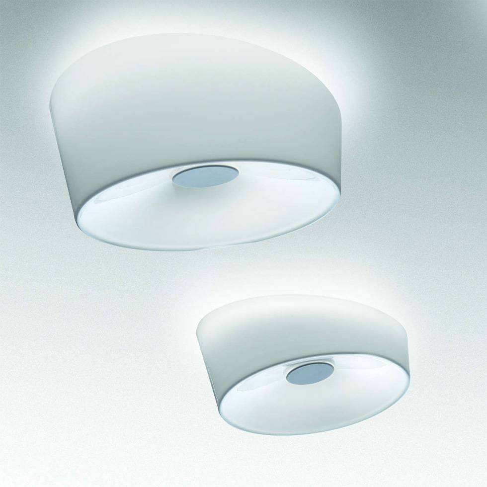 De Lumiere plafondlamp is een makkelijke lamp die zich overal thuisvoelt. Hij is een beetje scheef, en dat hangt eigenlijk wel lekker aan het plafond. De plafondlamp is gemaakt van geblazen glas en gelakt metaal. De Lumiere plafondlamp van Foscarini is verkrijgbaar op XXS of XXL afmetingen. Je denkt dan misschien aan heel erg klein en ontzettend groot, maar dat blijkt met een doorsnede van 25 of 34 centimeter nog best mee te vallen. Mooi om er meerdere van dezelfde of juist verschillende grootte met elkaar te combineren voor een speels effect aan het plafond.