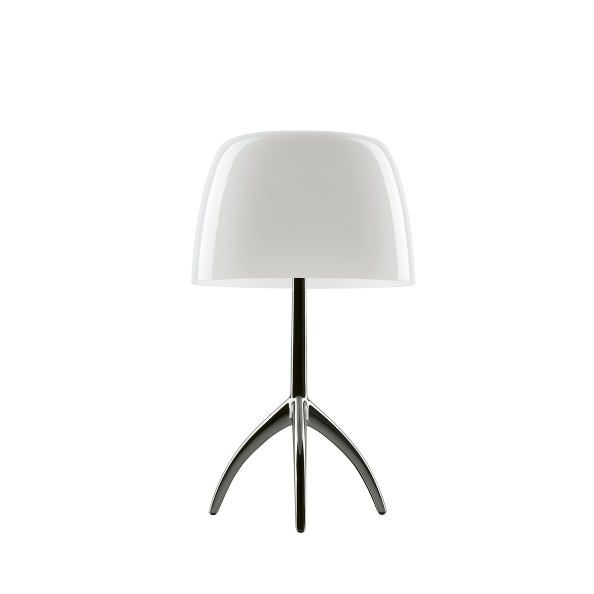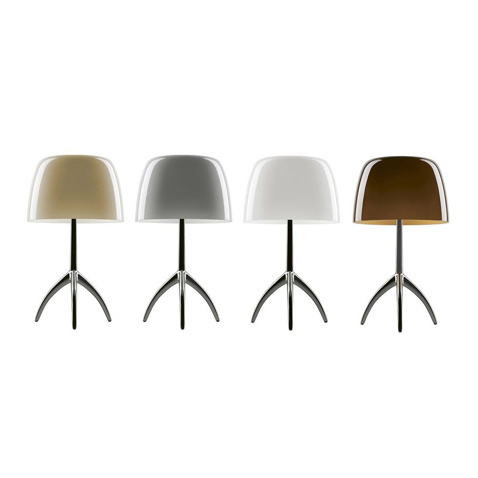 De Lumiere Grande tafellamp met aan-/uitschakelaar en aluminium onderstel is een van de bestsellers van Foscarini. Het ontwerp is geïnspireerd op een klassieke tafellamp met lampenkap. Deze lamp wordt gekarakteriseerd door de originele en harmonieuze combinatie van de mond geblazen glazen kap en het onderstel met drie pootjes. De gekleurde kap verspreidt het licht op een warme en tegelijkertijd intense manier.
