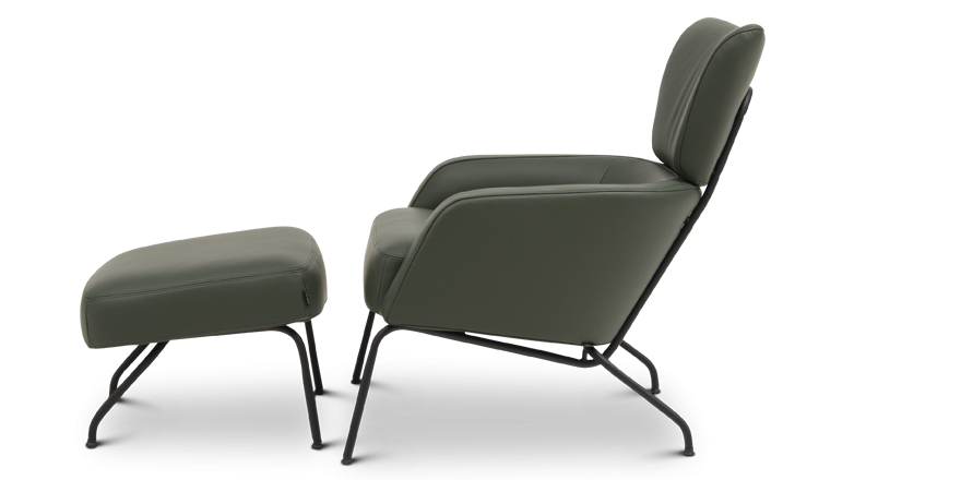 Fauteuil Clip is een typische Harvink: het zichtbare frame siert de fauteuil die leverbaar is in eindeloos veel uitvoeringen.Getoonde prijs is de vanafprijs van de fauteuil zonder hocker.