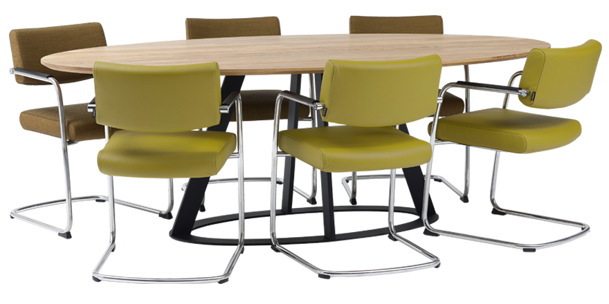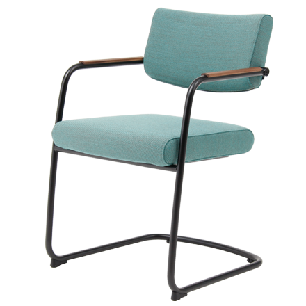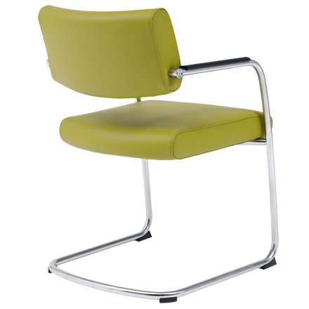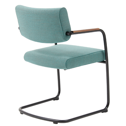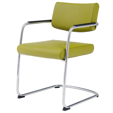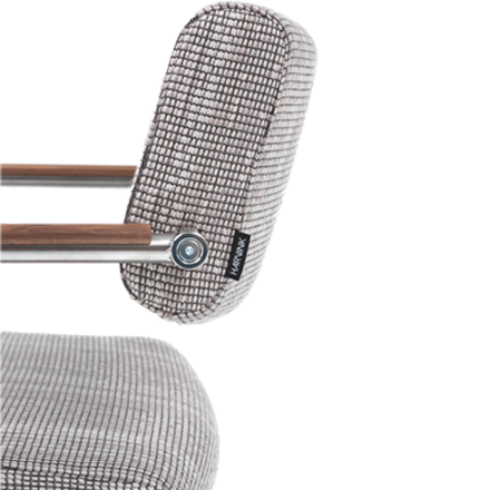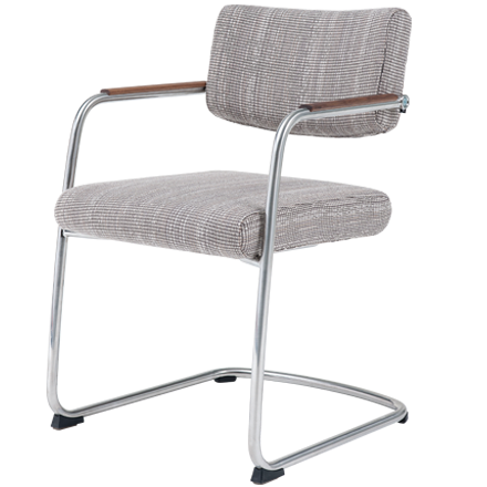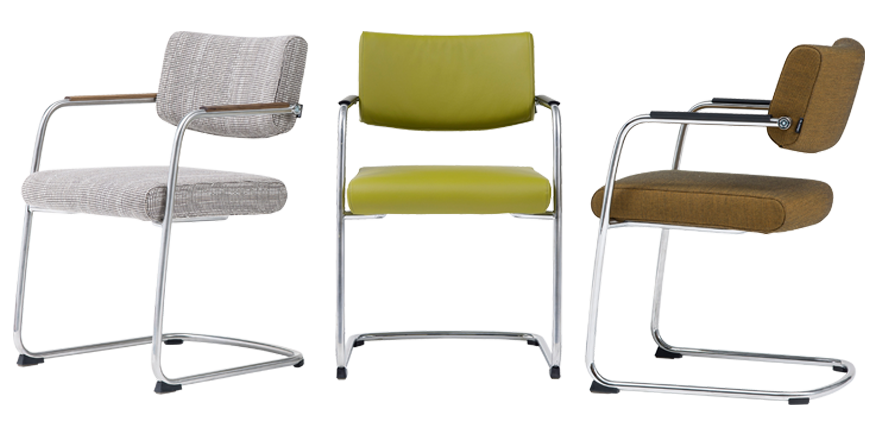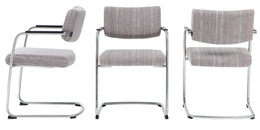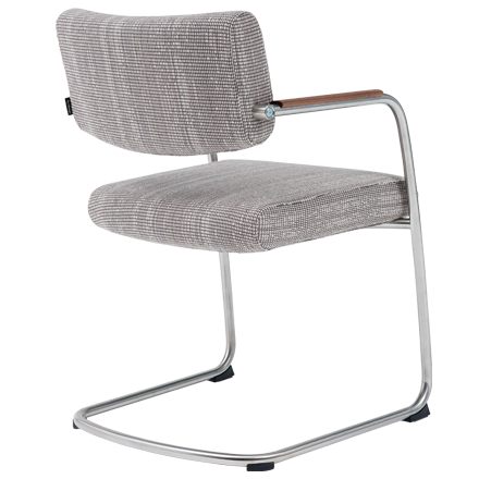 Door het sledeonderstel geeft de stoel een subtiele vering. Het zorgt ook voor een enigszins zakelijke, maar tegelijkertijd zorgt de zwevende zitting voor een speelse uitstraling. De zitdiepte is instelbaar.