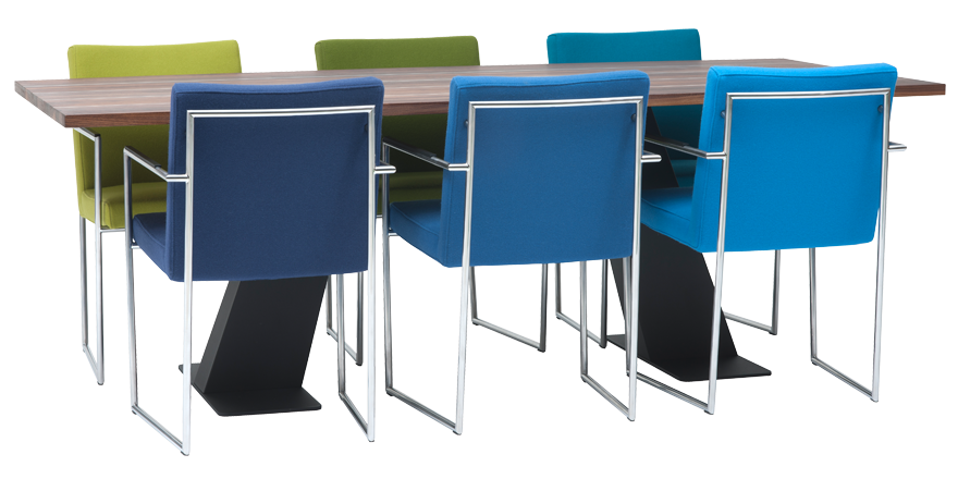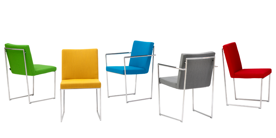 Het hoekige frame van deze twee Harvink klassiekers maken hen herkenbaar. Dash is de versie met armleuningen, Point het model zonder.