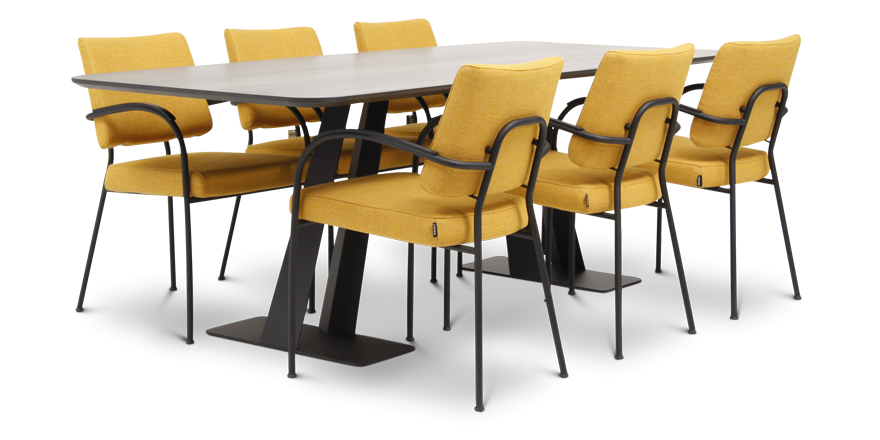Tosca is een luchtige tafel die op een paar ski’s staat. Het blad heeft met haar ronde hoeken een vriendelijk uitstraling. Vanaf 2020 is ook een vierkant blad mogelijk op het Tosca onderstel. De vanafprijs is gebaseerd op het vierkante blad.