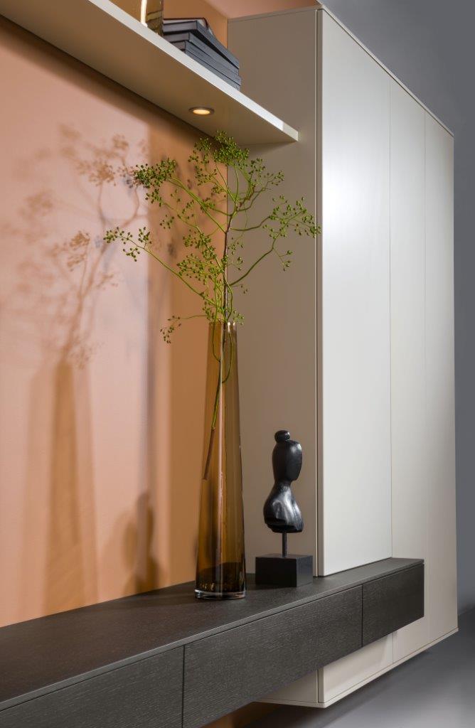 Kies voor warme kleuren in uw huis. Wees speels in uw interieur dankzij de verschillende dieptes van het Interstar kast systeem 222-10. Laat bijvoorbeeld een diepere kast happen in een ondiepe kast. Personaliseer uw Interstar wandmeubel volledig naar uw wensen.
