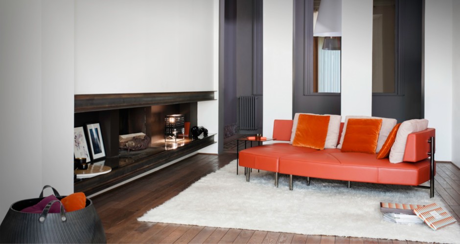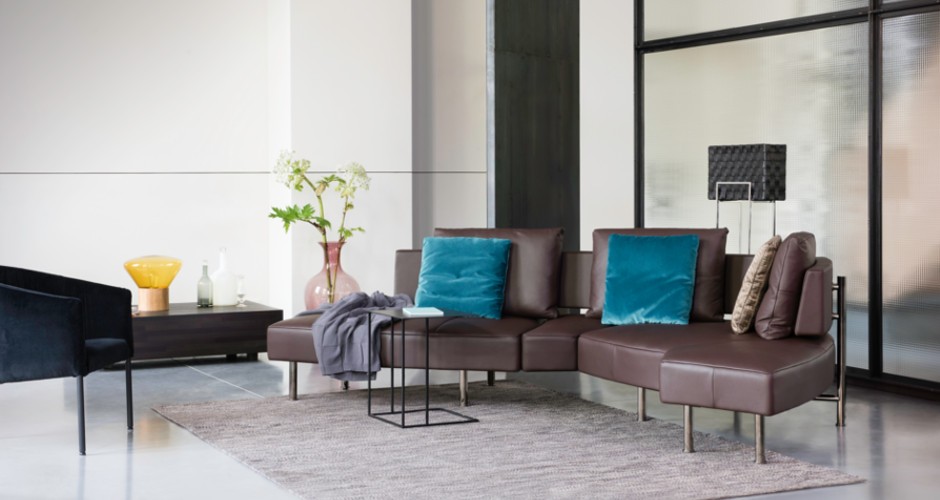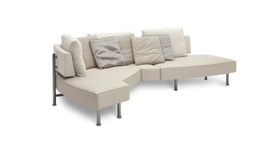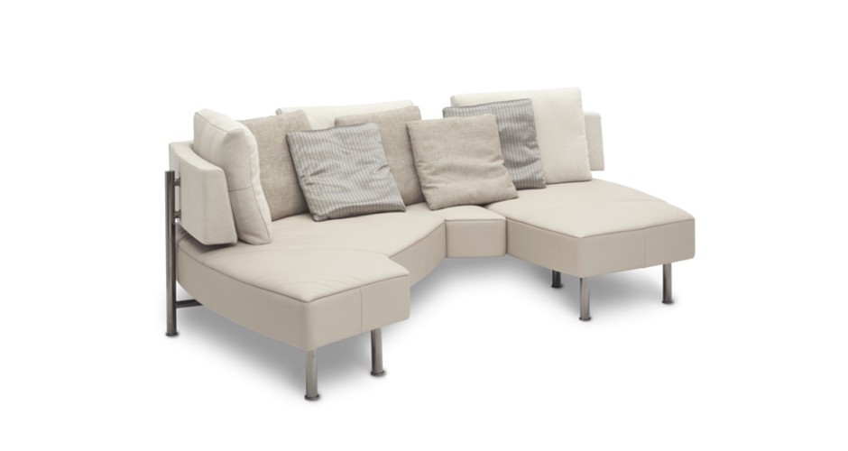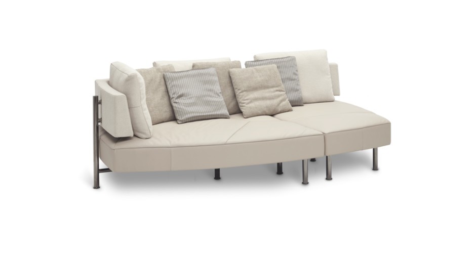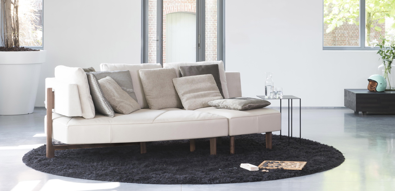 De Kameleontische klasse is een verstelbare hoeksofa met draaibare elementen die zich aanpast aan uw stemming. Vijf posities: eiland, dubbele lounge, lounge, hoeksofa of bed. Frame van massief beukenhout, pootjes in gefumeerd chroom of notelaar. Verkrijgbaar in leder, stof of microvezel, met combinatiebekleding en drie rugkussens. Comfortabel, veelzijdig en stijlvol.