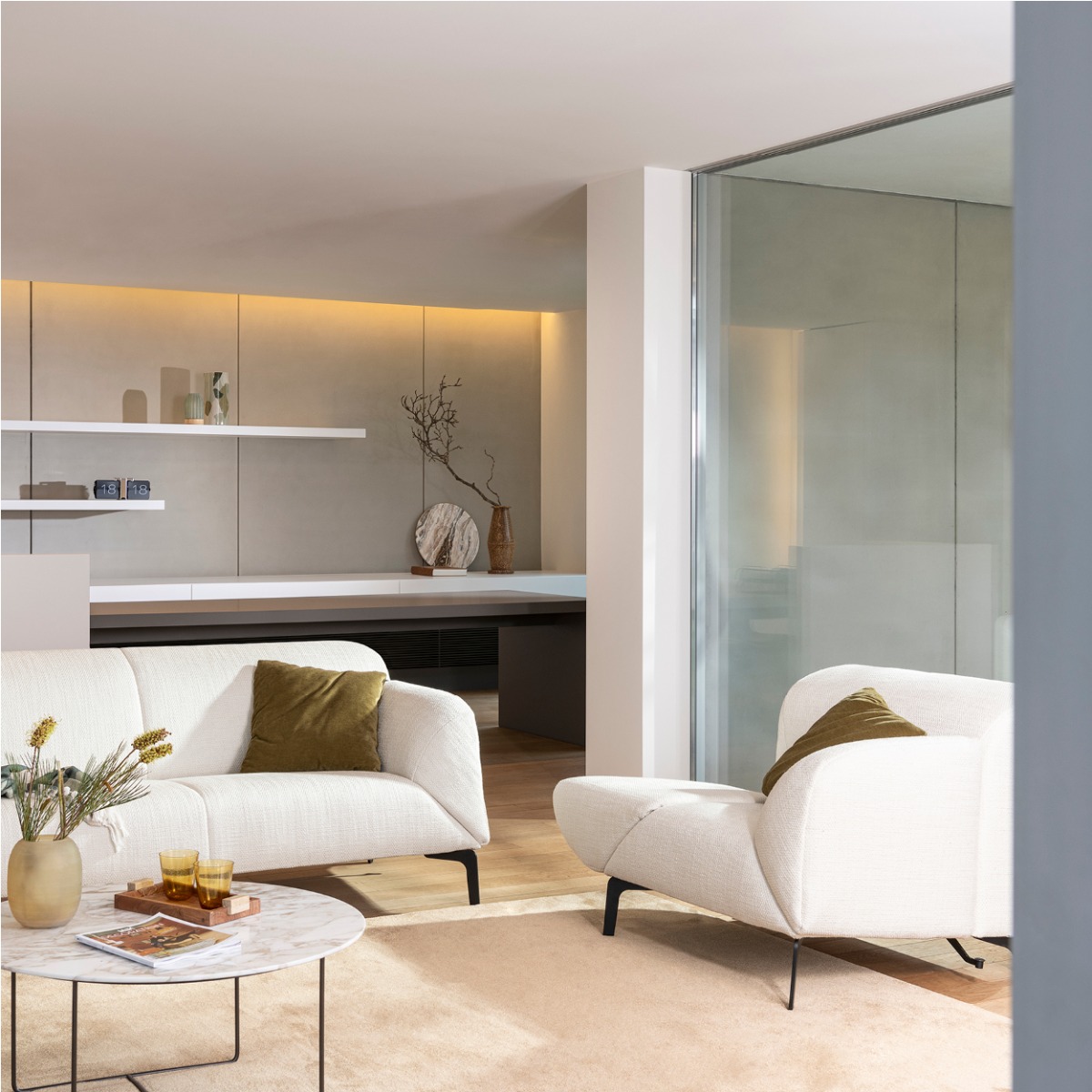 De Jori Como fauteuil combineert strakke buitenlijnen met zachte, organische vormen en verstelbare armleuningen. Zo creëert u eenvoudig een gezellige loveseat voor extra zitplekken. Het ontwerp houdt uw zithoek dynamisch en uitnodigend. Verkrijgbaar in diverse stoffen, zodat u de fauteuil volledig kunt afstemmen op uw stijl en interieur.
