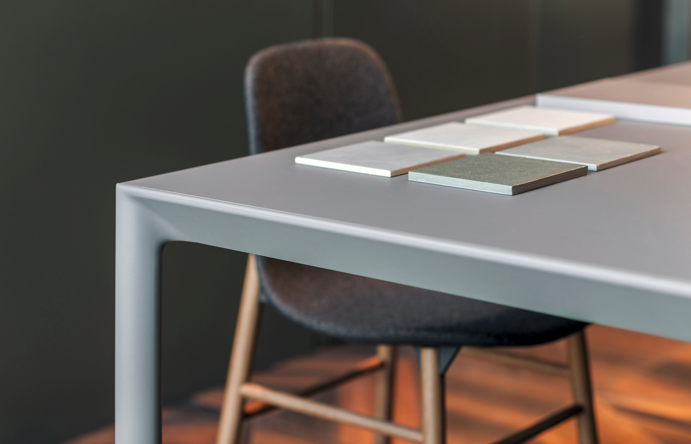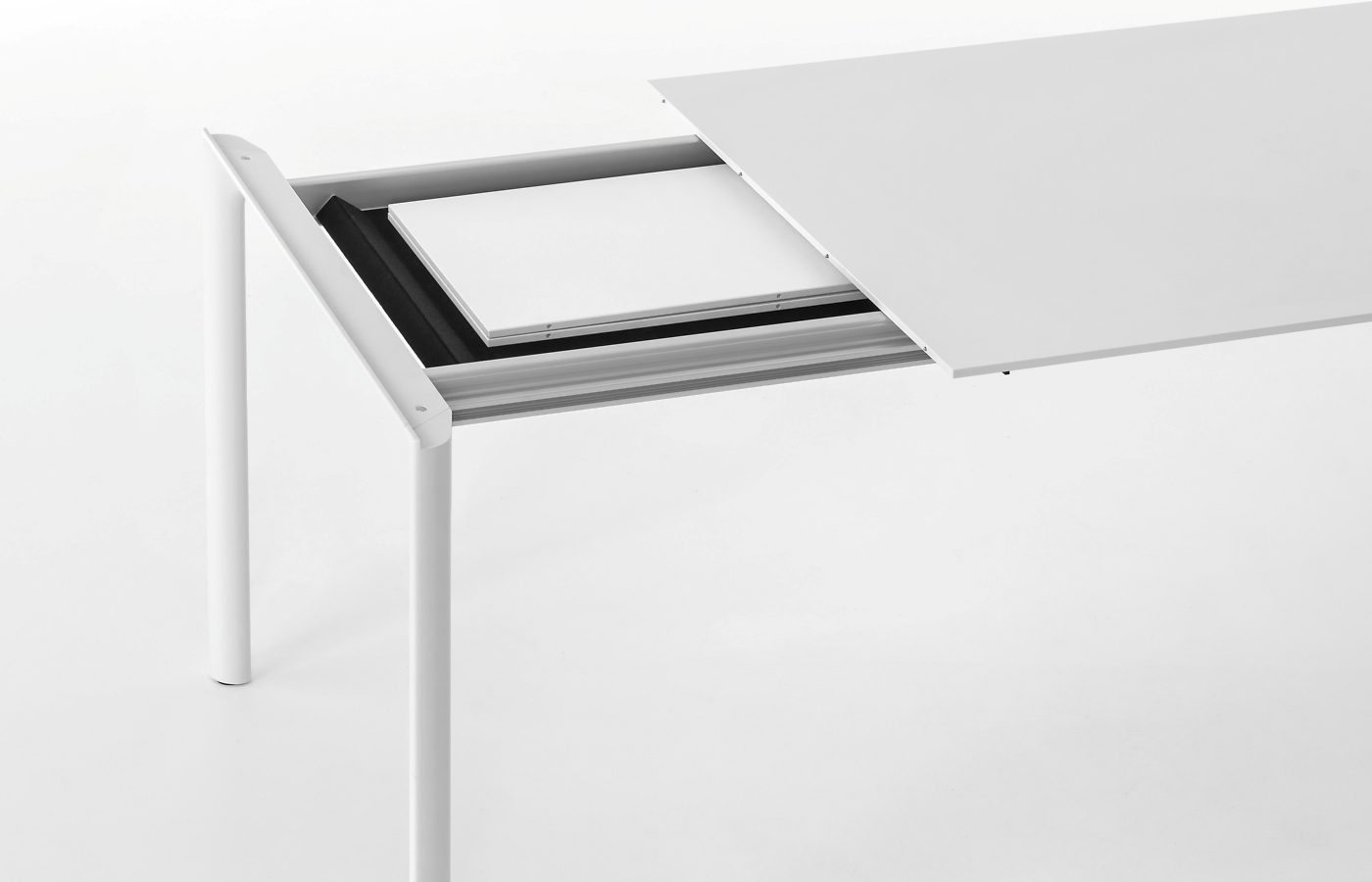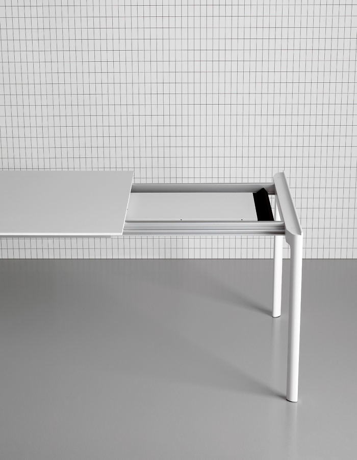 Maki beschikt over een vaste of uitschuifbare variant en is te bestellen in verschillende maten en kleuren. Ook het bovenblad van de tafel is beschikbaar in verschillende materialen: een glazen- of alucompact bovenblad.
