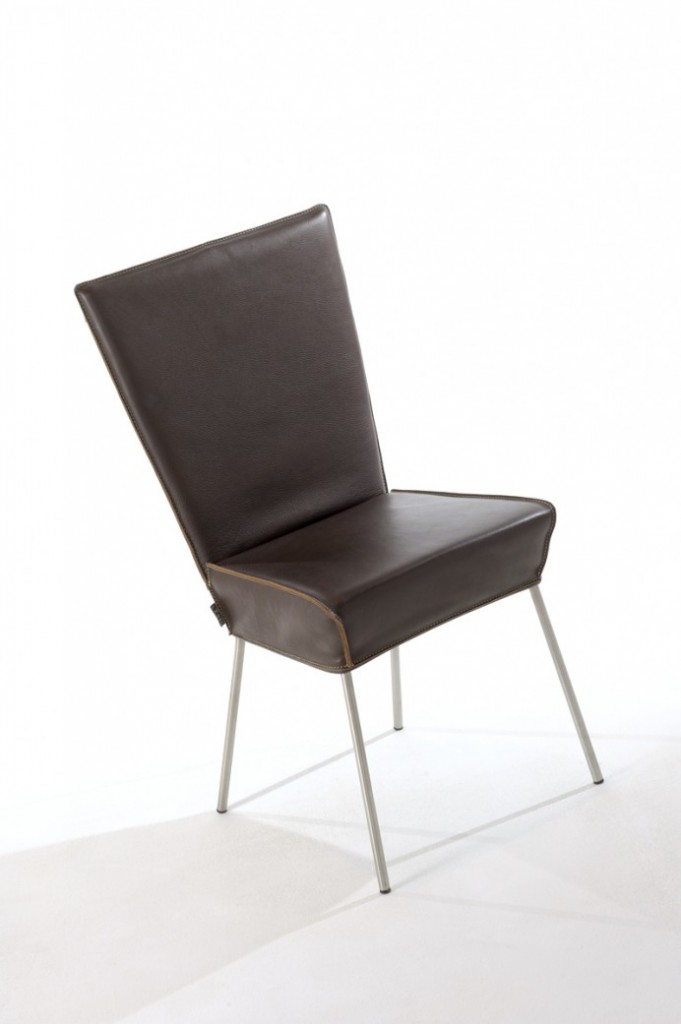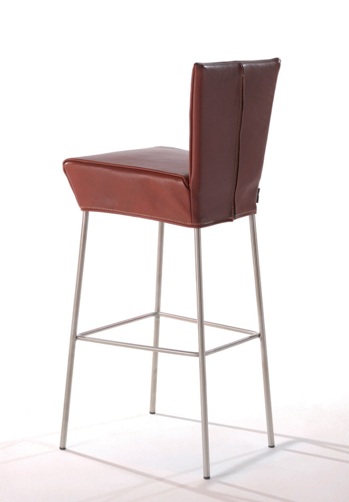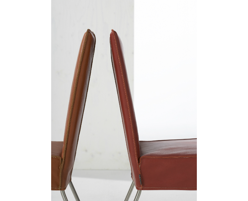 Orea is zowel een eetkamerstoel als een barstoel. Het is een veelzijdig en strak vormgegeven meubelstuk. Wat opvalt zijn de geknikte hoeklijnen en het contrast tussen het brede zitgedeelte en de smalle rugsteun