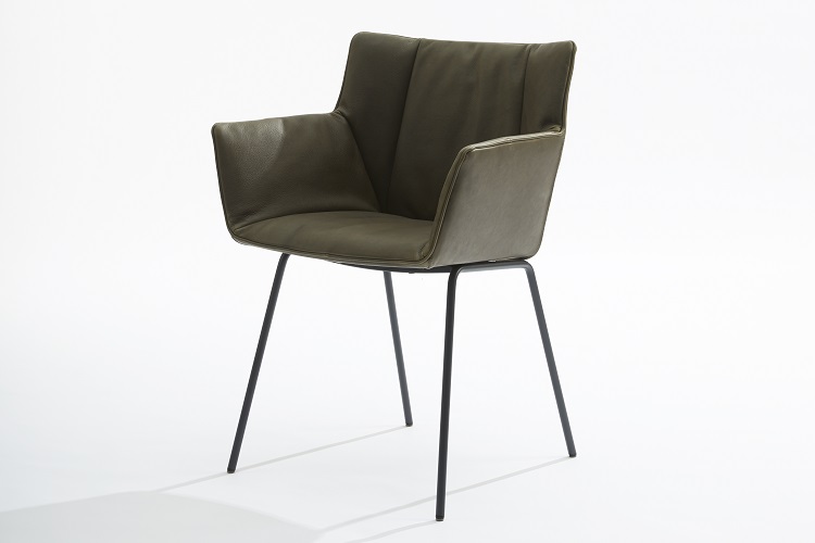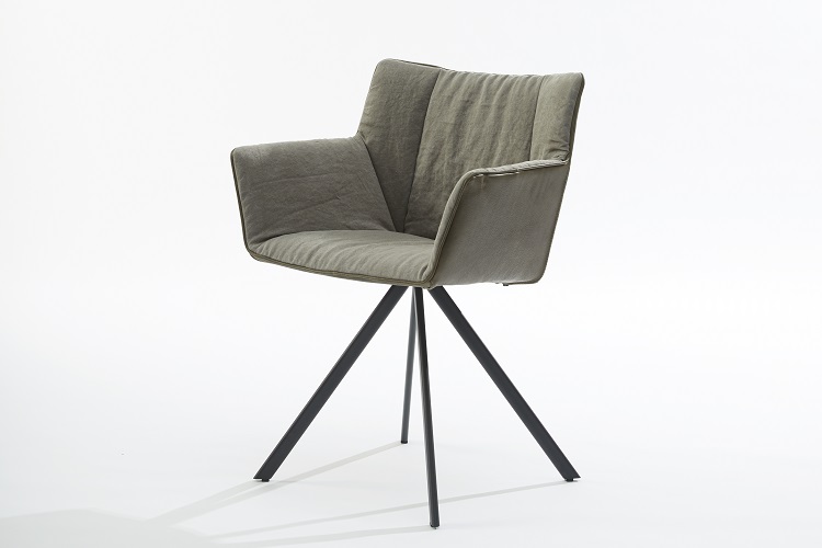 De eetkamerstoel is zowel beschikbaar met een ‘fixed’ onderstel (4 poten) als met een spinvoet. De binnenzijde en buitenzijde van de stoel kunnen onafhankelijk van elkaar in leer en in stof bekleed worden.
