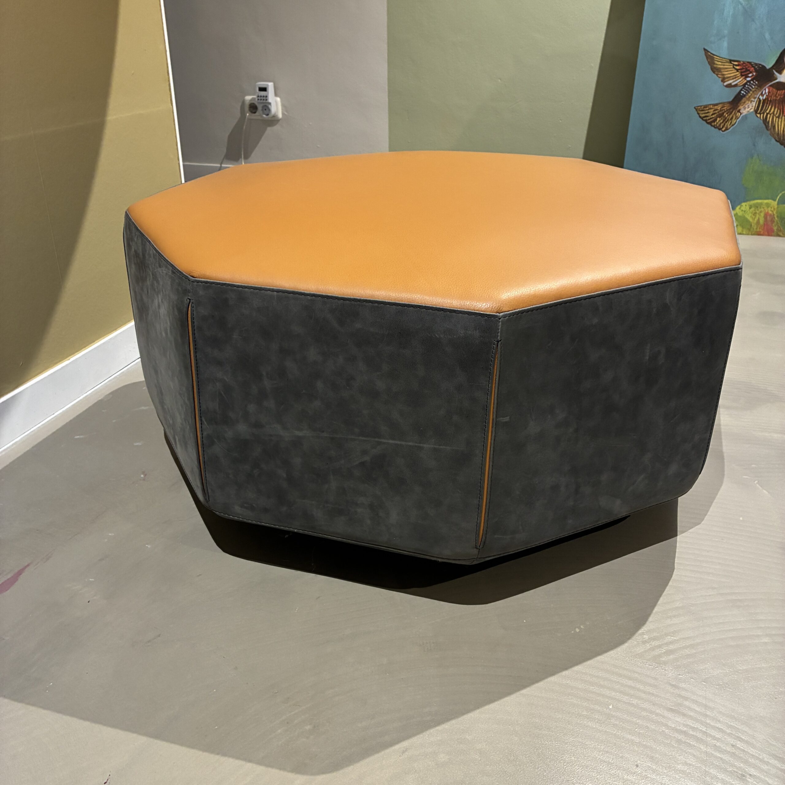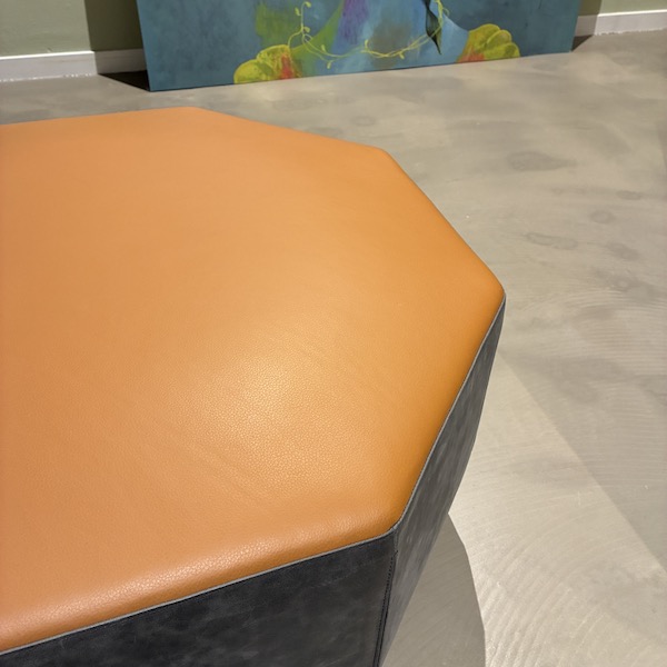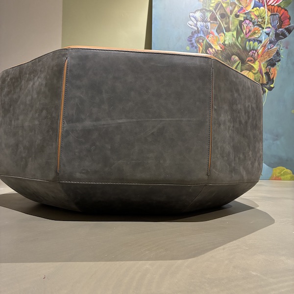 - Wat deze Amulet poef echt bijzonder maakt, is het subtiele detail op de hoeken. Het donkere leer is daar opengewerkt, waardoor het cognackleurige leer er via een langwerpige kier doorheen zichtbaar wordt. Een verfijnd en typisch Leolux detail dat het vakmanschap en de aandacht voor materiaal duidelijk laat zien. Daarnaast is het formaat lekker ruim. Ideaal als extra zitplek, voetenpoef of als informele salontafel met een dienblad erop.