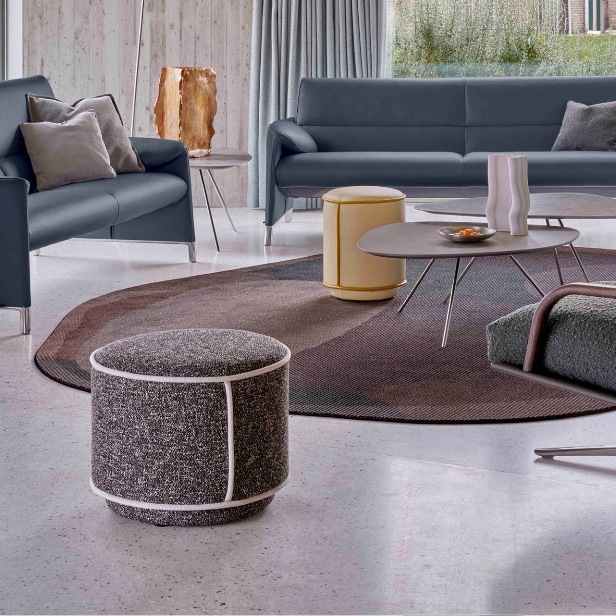 De Leolux Bolmin poef, ontworpen door Studio Truly Truly, valt op door de grote siersteken en oversized biezen die het design een uniek karakter geven. Het speelse ontwerp speelt met kleur, materiaal en textuur, waardoor subtiele combinaties en expressieve accenten mogelijk zijn. De poef biedt volop mogelijkheden om een persoonlijk statement in uw interieur te maken. De Leolux Bolmin is vanaf kort voor Pasen 2025 te bezichtigen in onze Leolux Select store in Benthuizen; informeer of maak een afspraak om uw poef samen te stellen.
