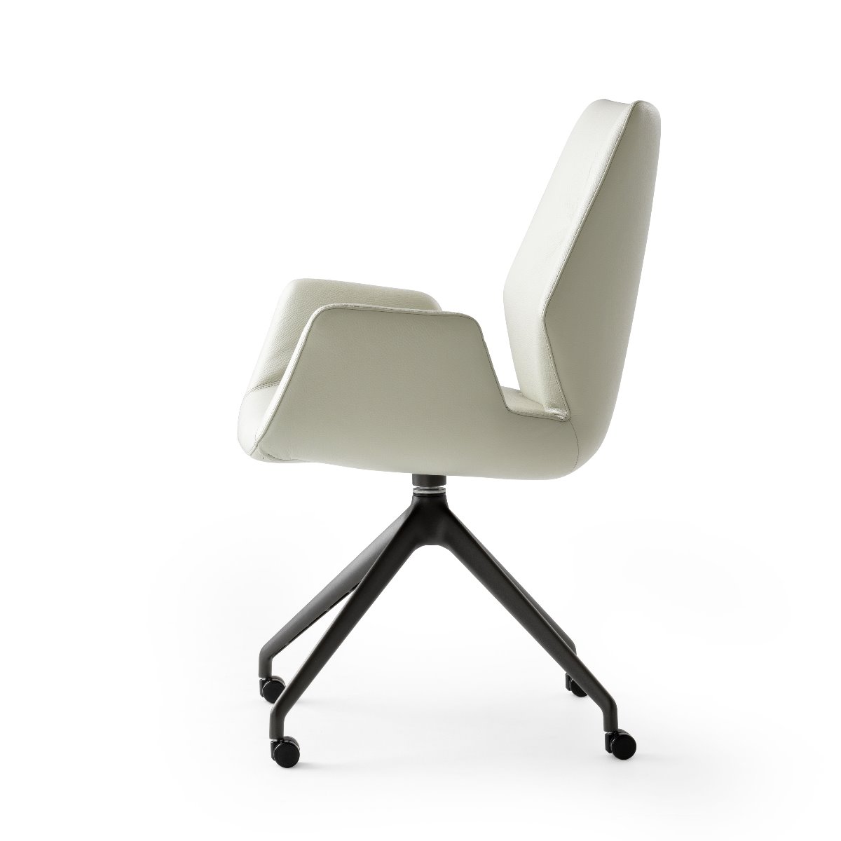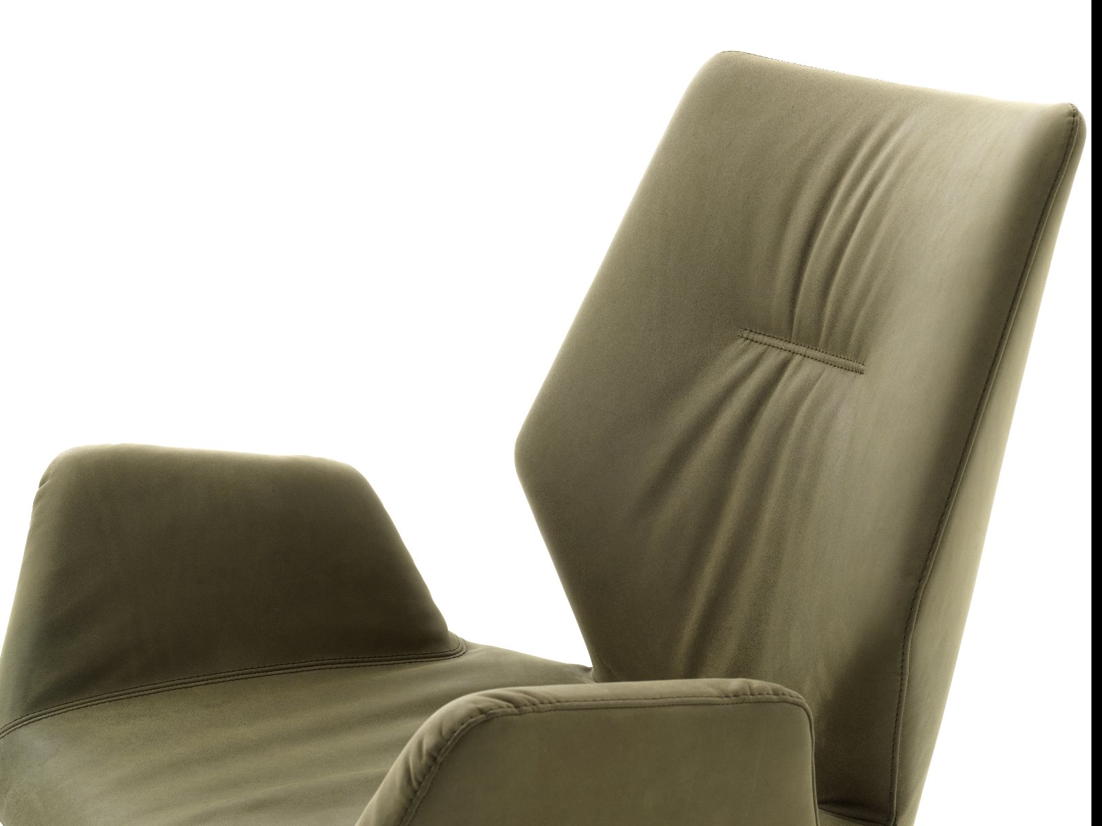 Elegant met een Italiaans tintje. Ontwerper Gino Carollo bracht subtiele details aan in de Leolux Mime: zachte plooien, het accent en de fraaie siersteek op de voorzijde van de rug maken de design eetkamerstoel een echte schoonheid. Maak de design stoel helemaal eigen door zelf de bekleding samen te stellen voor zowel de binnen- als buitenzijde van de stoel. De zitkuipjes zijn leverbaar met of zonder armen en ook het onderstel is verkrijgbaar in een draaivoet of een slede. Een mooi ontwerp met authentiek comfort, precies wat u gewend bent van Leolux.