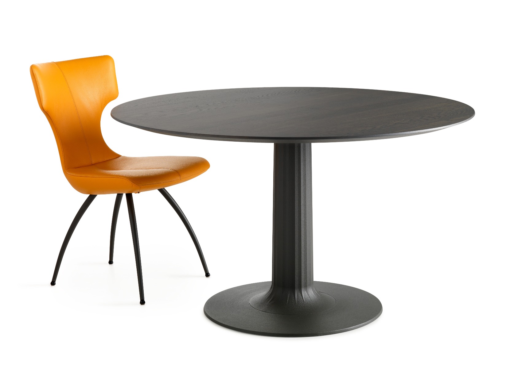 De Columna van Leolux is vooral een praktische tafel. De design eetkamertafel is leverbaar met een ronde of ovale vorm, zodat er een maximaal aantal mensen kunnen zitten, zonder last te hebben van de tafelpoten. De voet en het zeer dunne tafelblad worden verbonden door een rechte kolom. De enige frivoliteit die ontwerper De Ruiter veroorloofde, is de manier waarop de kolom aansluit op de voet: als een marmeren kolom uit de oudheid. Verschillende mogelijkheden zijn er om aan uw wensen te voldoen. Materiaal van het blad, voet en de kolom.