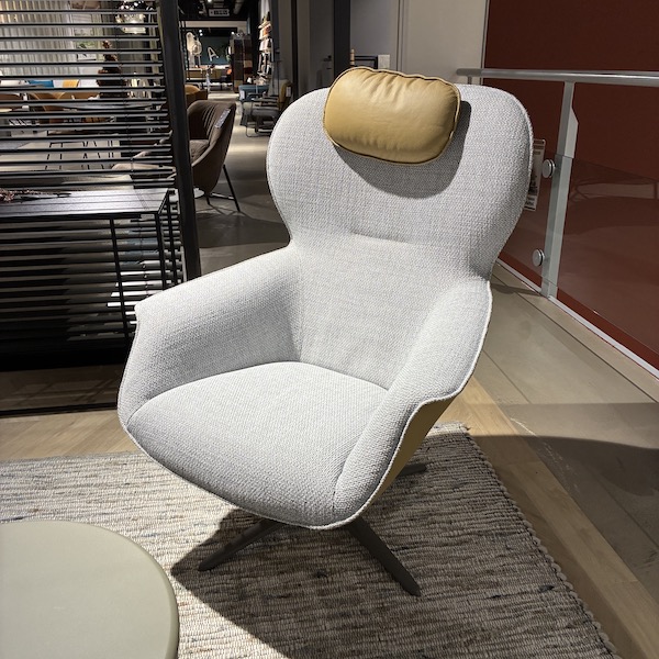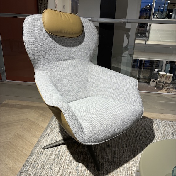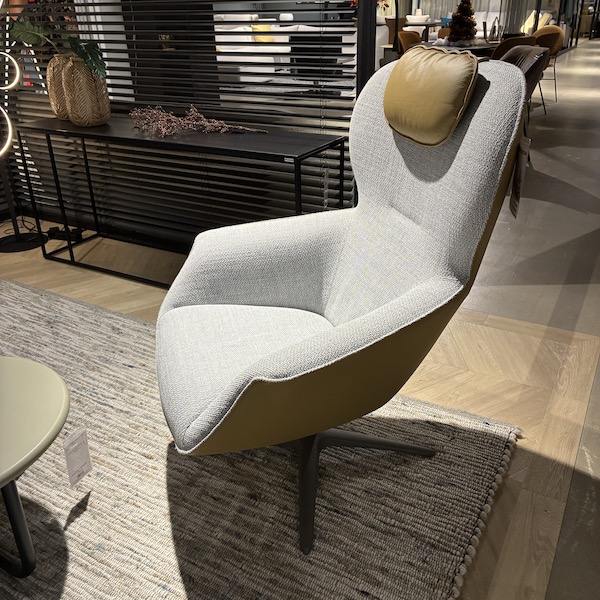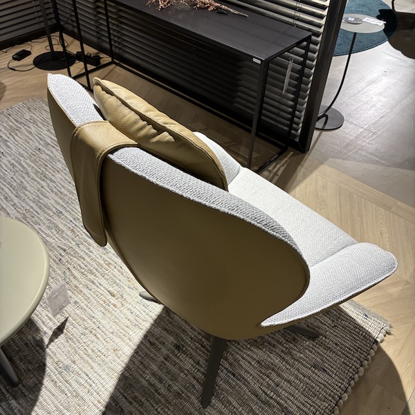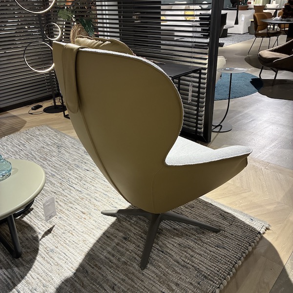 De Pode Flare fauteuil met stof en leer is een uitnodigende fauteuil met een fijne, actieve zit en een eigen karakter. De buitenzijde in een warme okergrijs-groene ledertint geeft meteen sfeer en laat zich prachtig combineren met hout, natuurlijke materialen en lichte tinten, terwijl de lichte stof aan de binnenzijde zorgt voor een zacht en rustig geheel. Nu met showroomkorting beschikbaar.