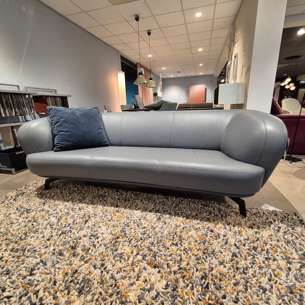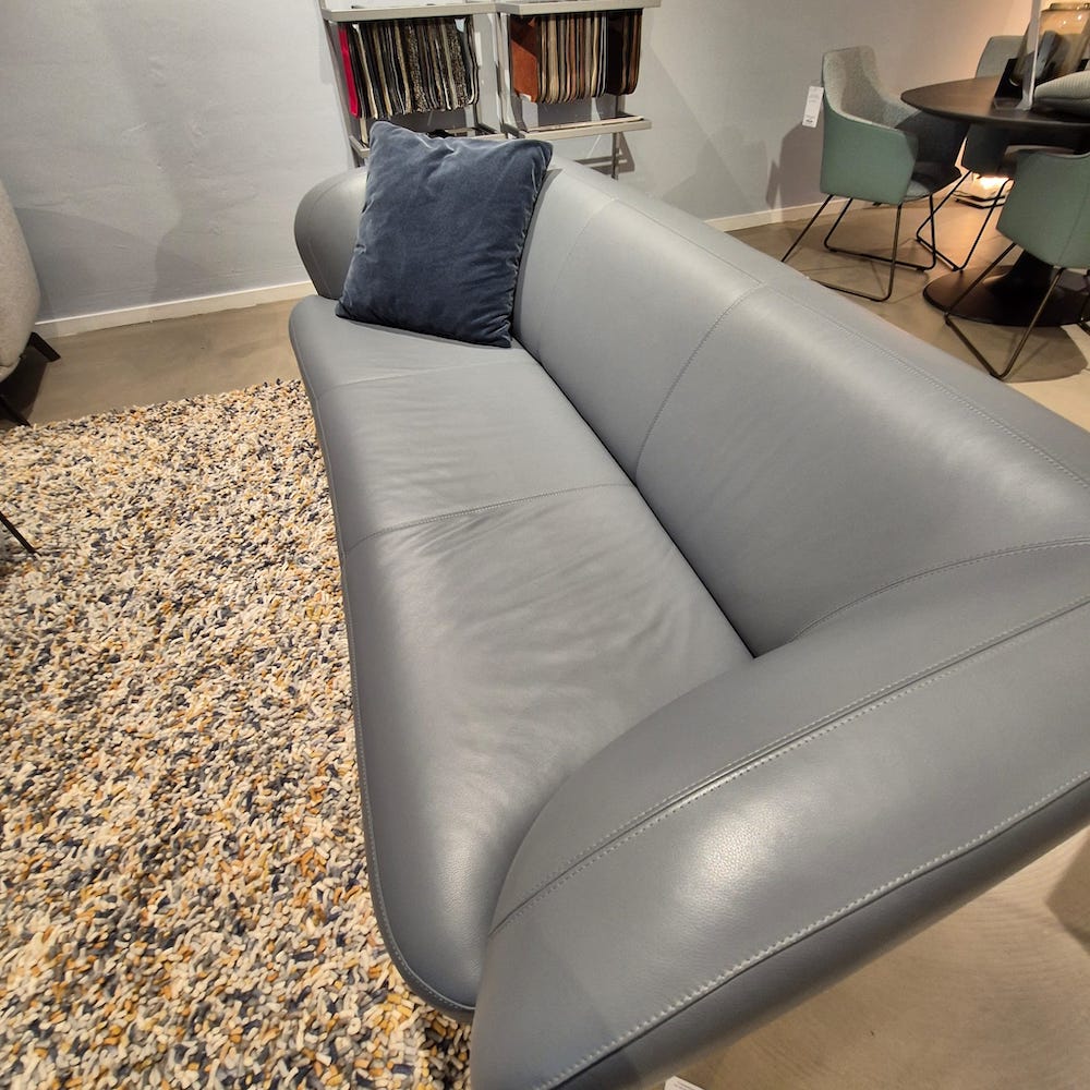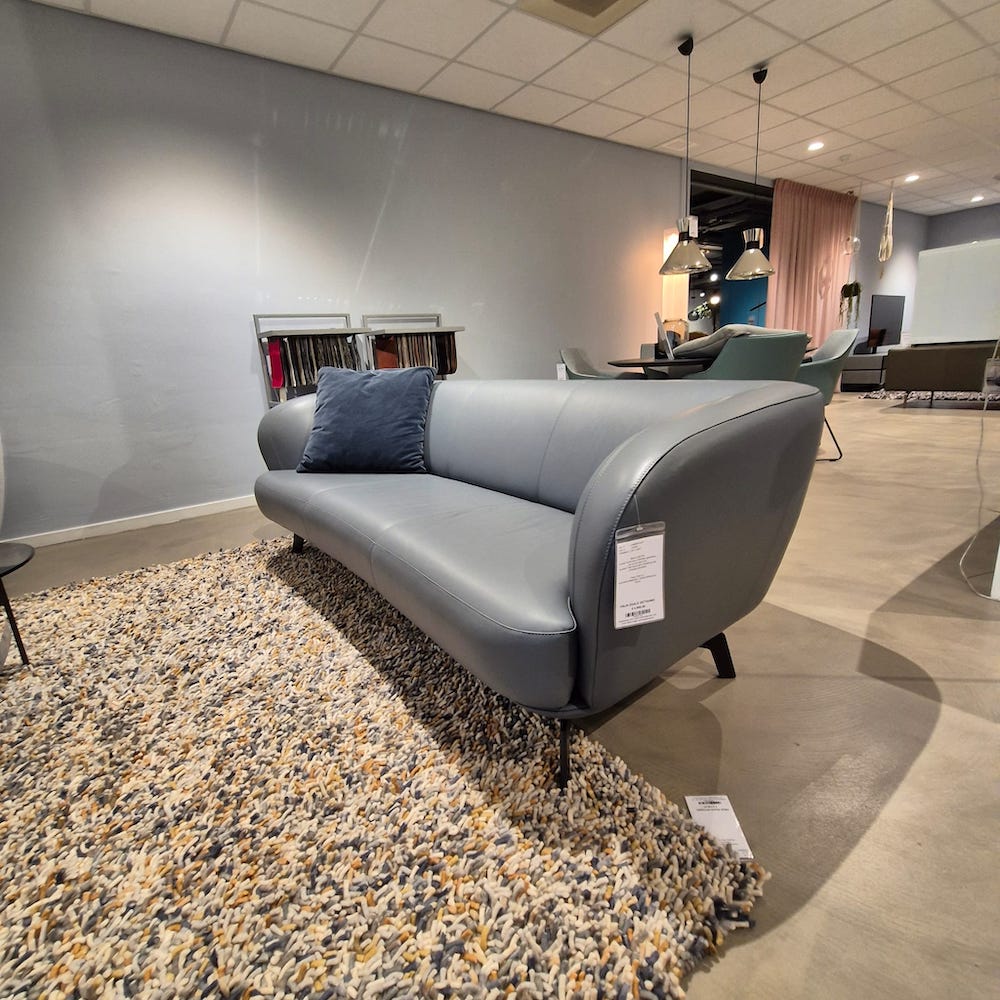 Het showroommodel van de Leolux Flint is in een koele grijsblauwe leder uitvoering, nu voor een outlet prijs verkrijgbaar in onze showroom!